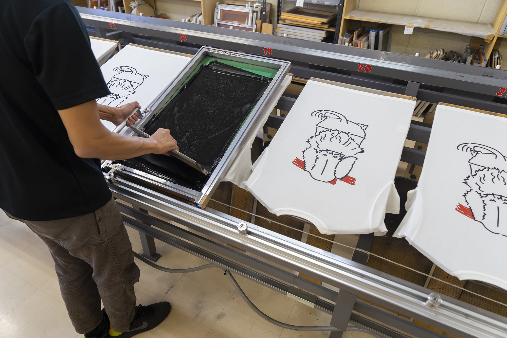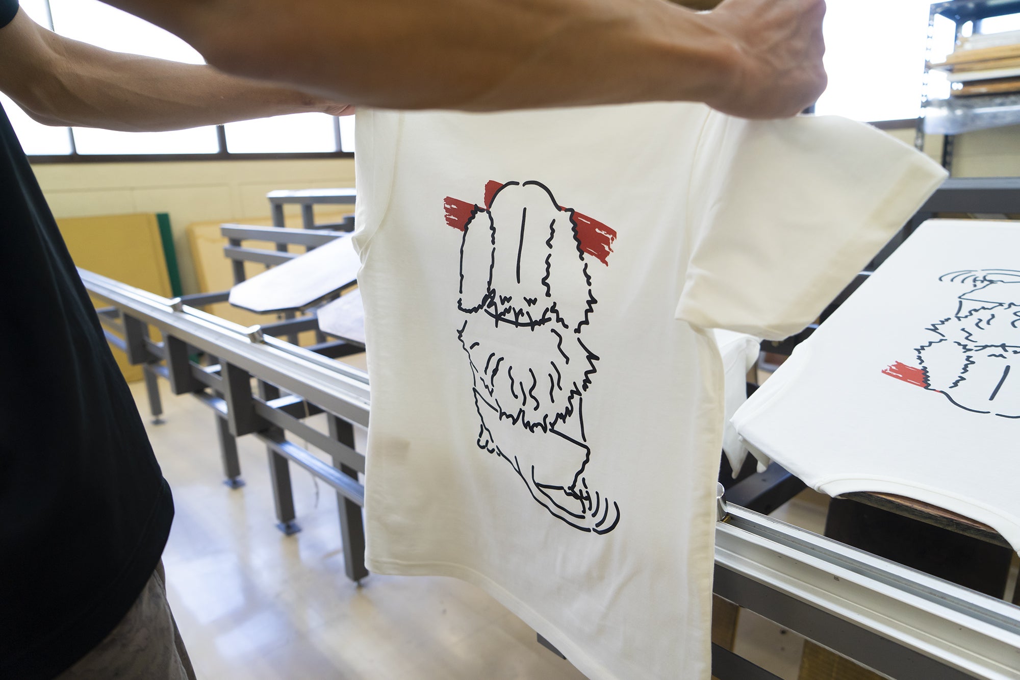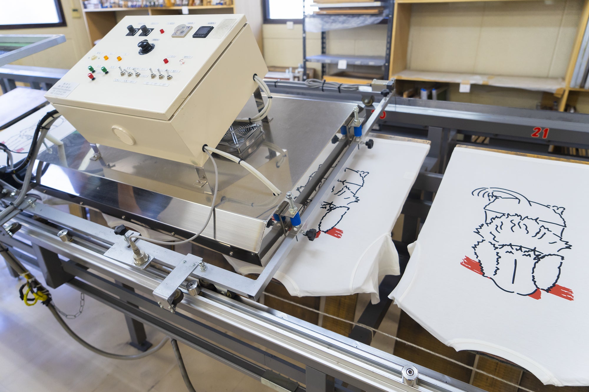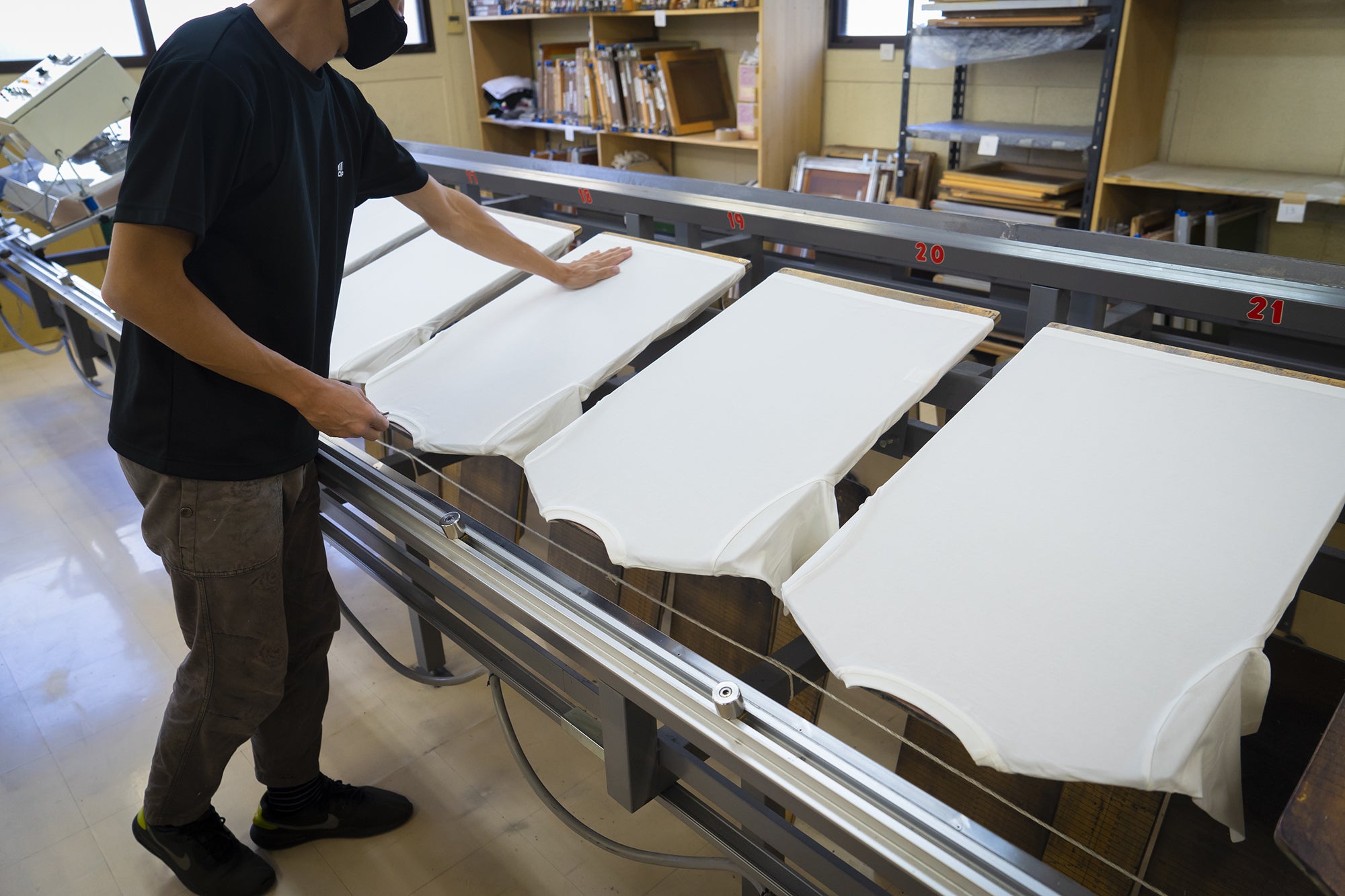Tシャツをセットするのも一見簡単そうに見えますが(自分には簡単そうに見えました。。)、少し位置がずれるだけで印刷が斜めになったりずれてしまったりとクオリティが大きく下がってしまうため、長年の経験と技術が重要とのこと。まさに職人技!