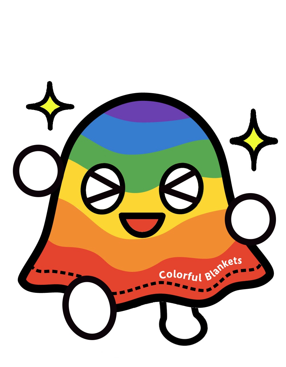 LGBTQのPRIDEのシンボルである6色レインボーのカラフルなブランケットを身にまとっています。中身がどうなっているかは秘密です。。。!