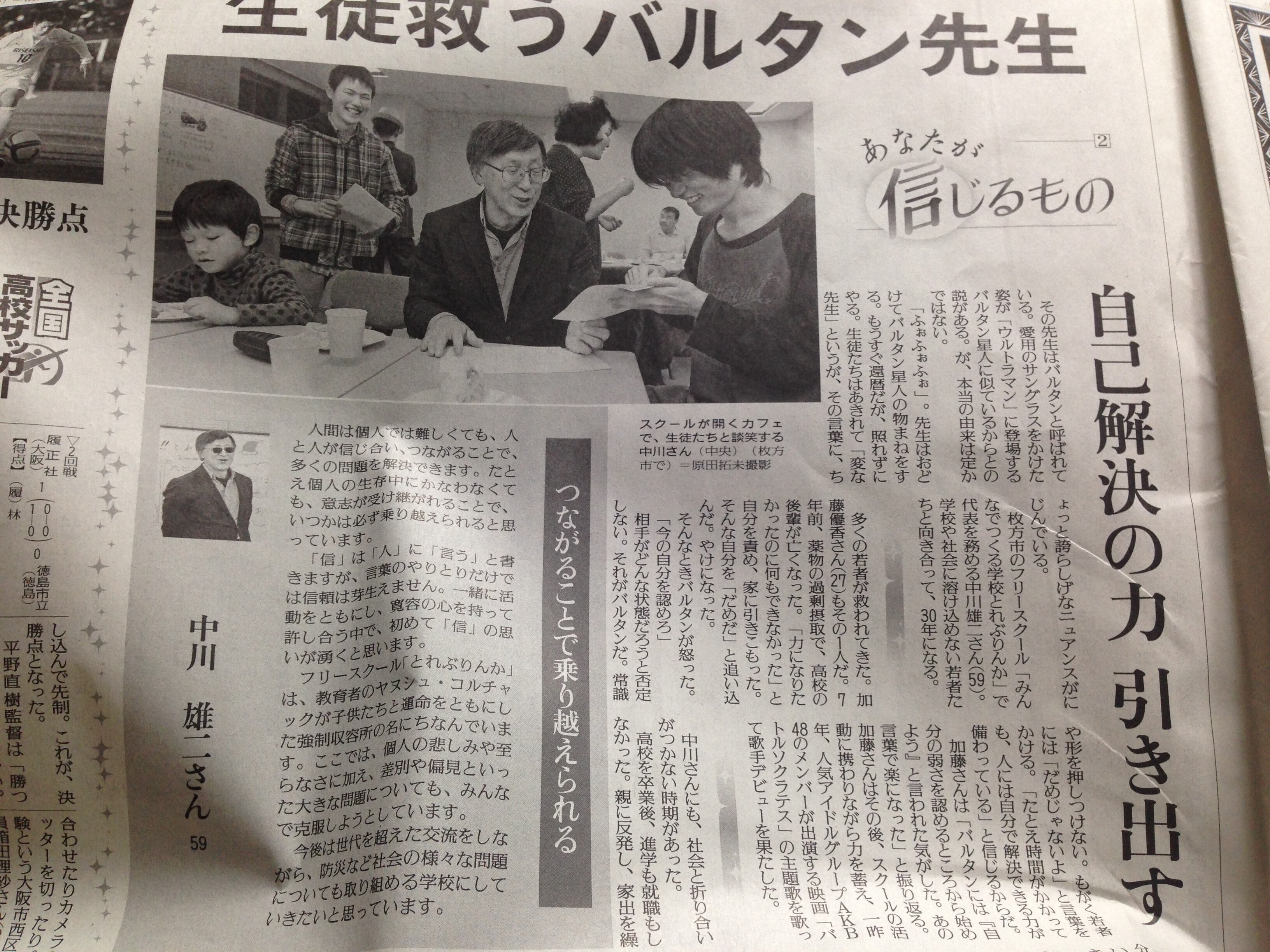 「みんなでつくる学校 とれぶりんか」は、元中学校教諭のバルタン先生とその教え子らが不登校や引きこもり、障害を持つ子どもたちの居場所づくりとして、2003年11月に大阪で立ち上げられたフリースクールです。