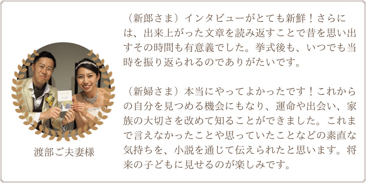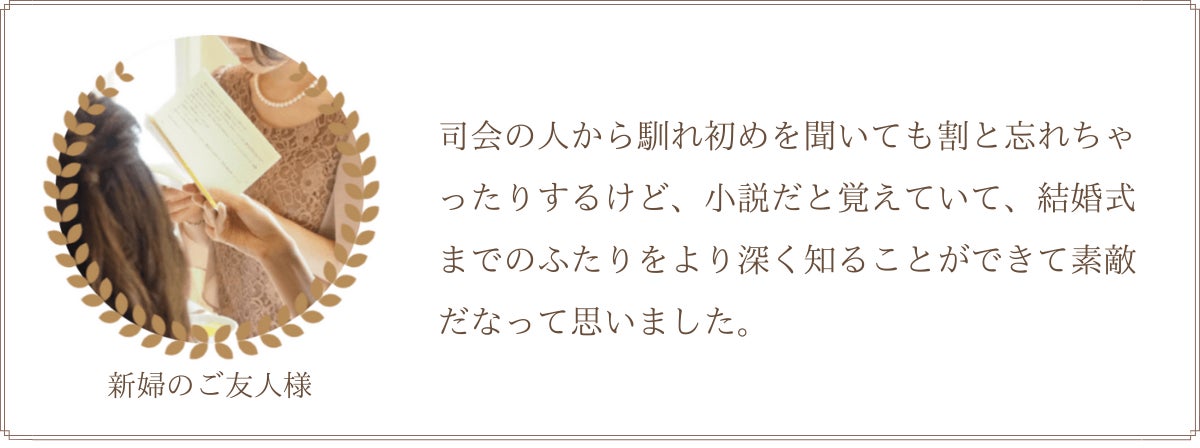 ウェディング小説は、ノロケ話をまとめたものではありません。2人の結婚への想いや覚悟を伝えるアイテムです。