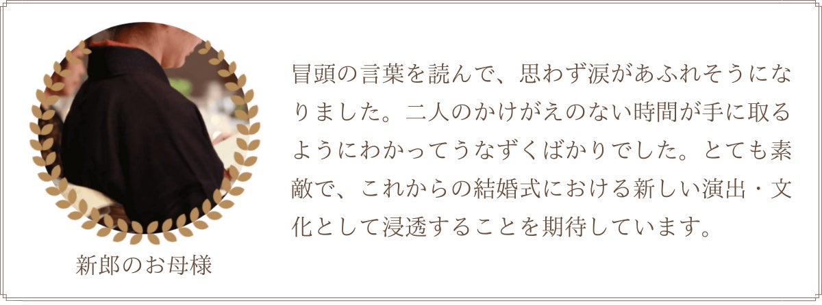 主役の二人はもちろん、参列者にとっても長く記憶に残る何かがあれば、と考えるきっかけになりました。