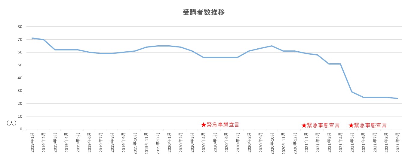 しかし未だ終わりの見えないコロナ禍で、スタジオに通う生徒は減っていく一方、