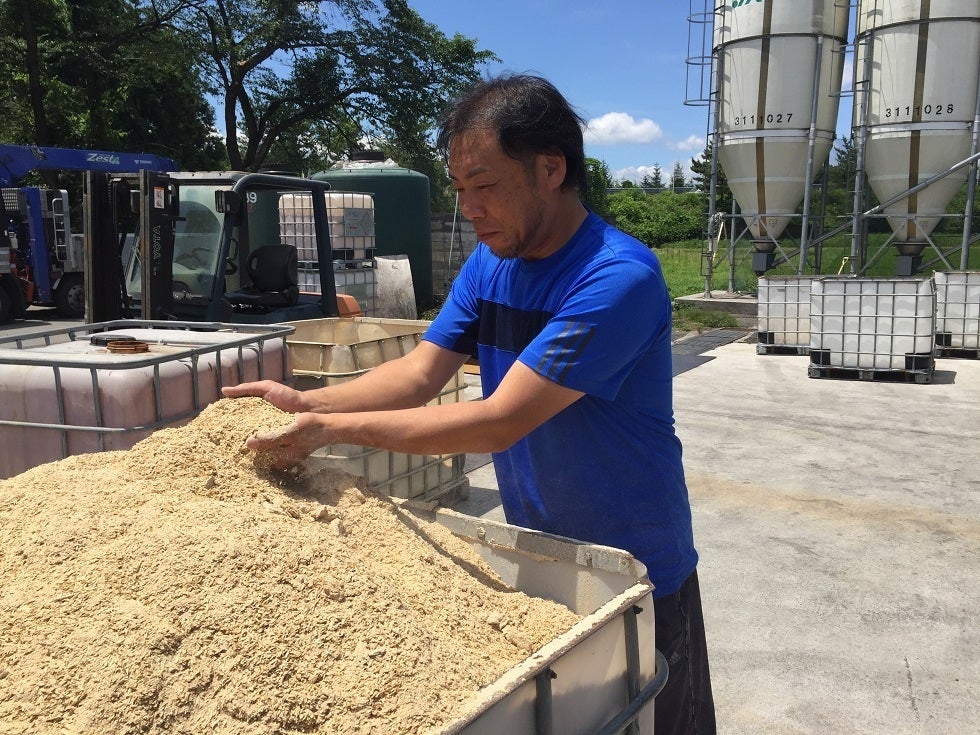 弊社では、エサにこだわっています。飼料を作る為の工場を立ち上げ、自社生産しております。