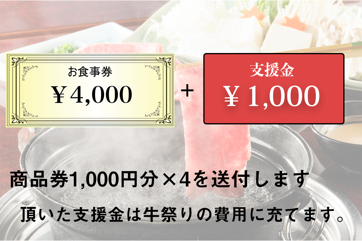 お食事券4,000円分または9,000円分が送付され、支援金1,000円を来年の「前沢牛まつり」に充てたいと思います。