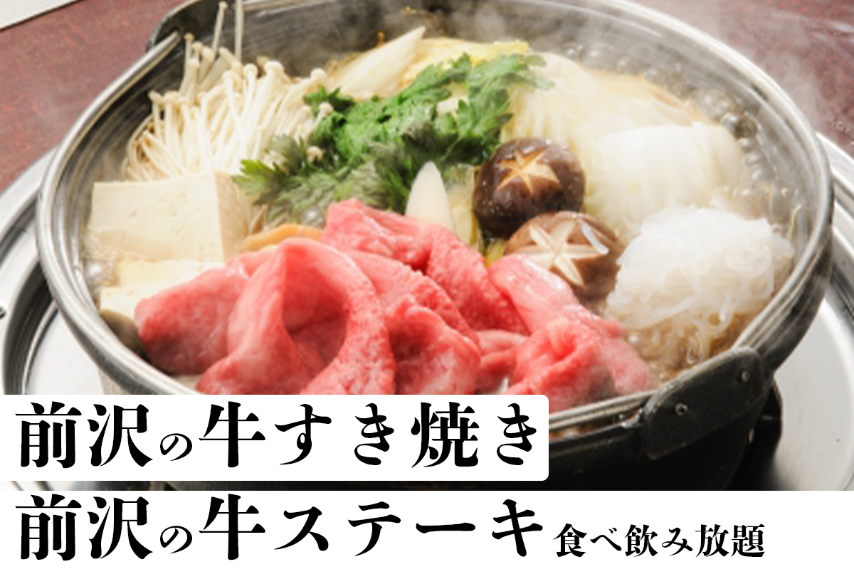すき焼・ステーキ(霜降・赤身)おかわり自由 ソフトドリンク、生ビール飲み放題