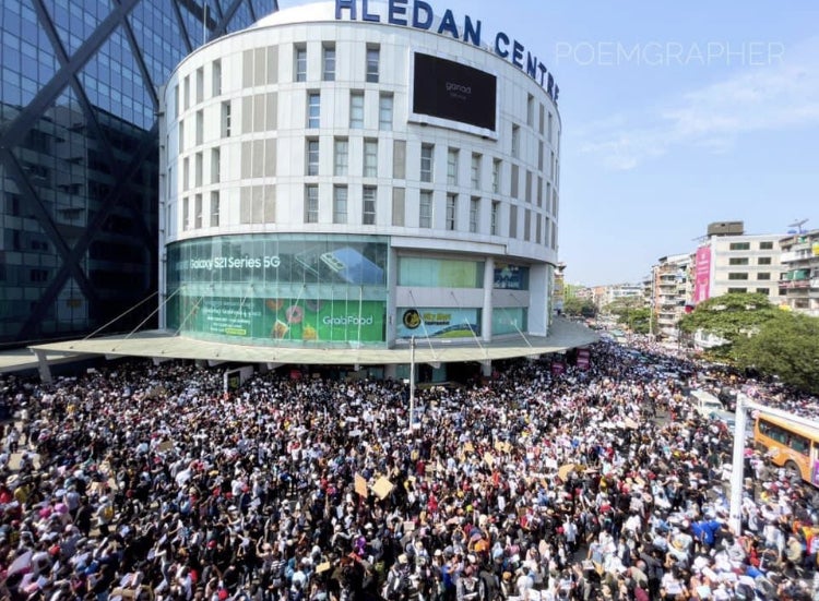 2021年2月 クーデターに抗議して集まる人々(レーダンセンター前)
