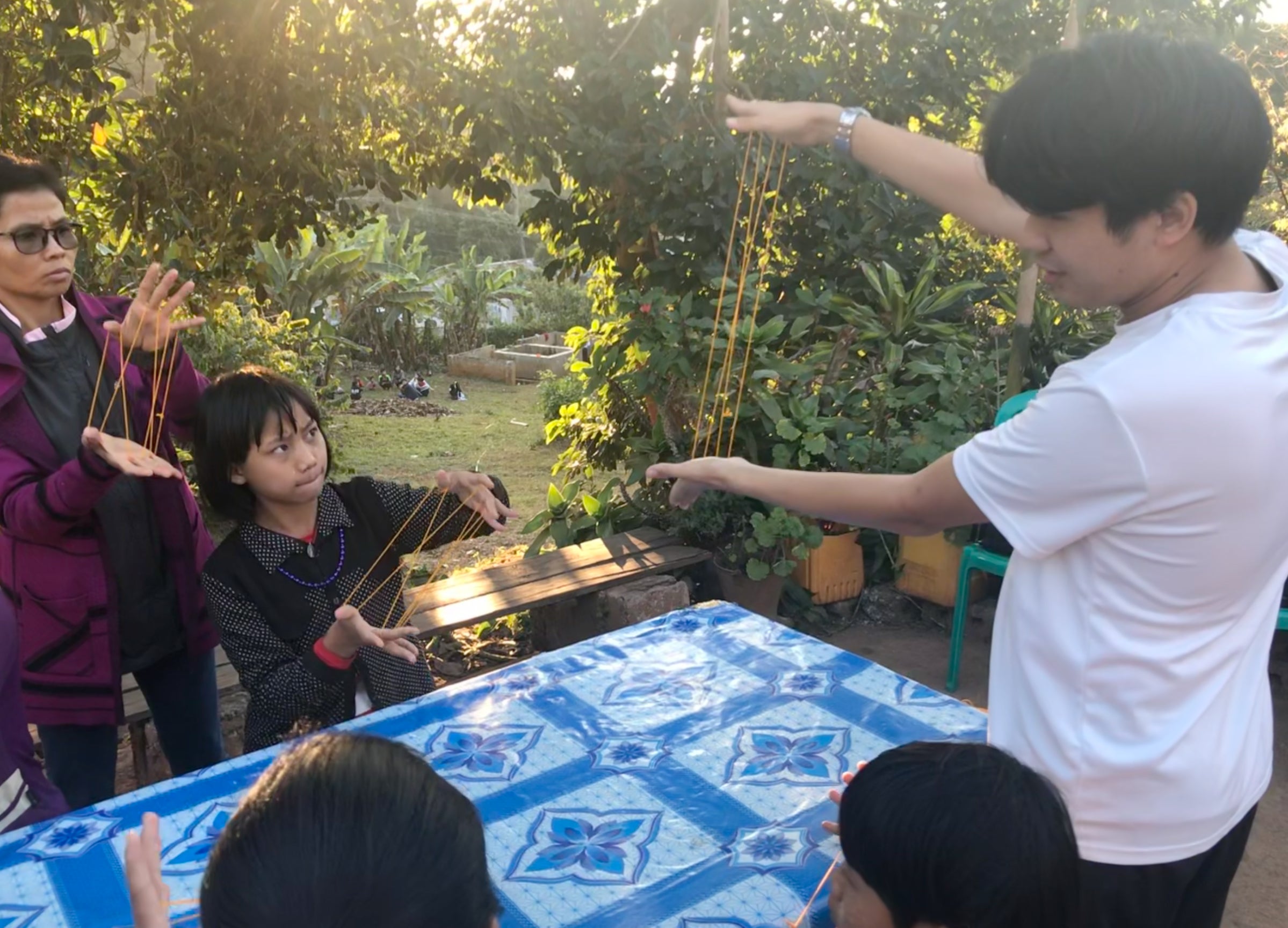 シャン州の子どもたちとあやとりをする僕とにかく生きるための支援