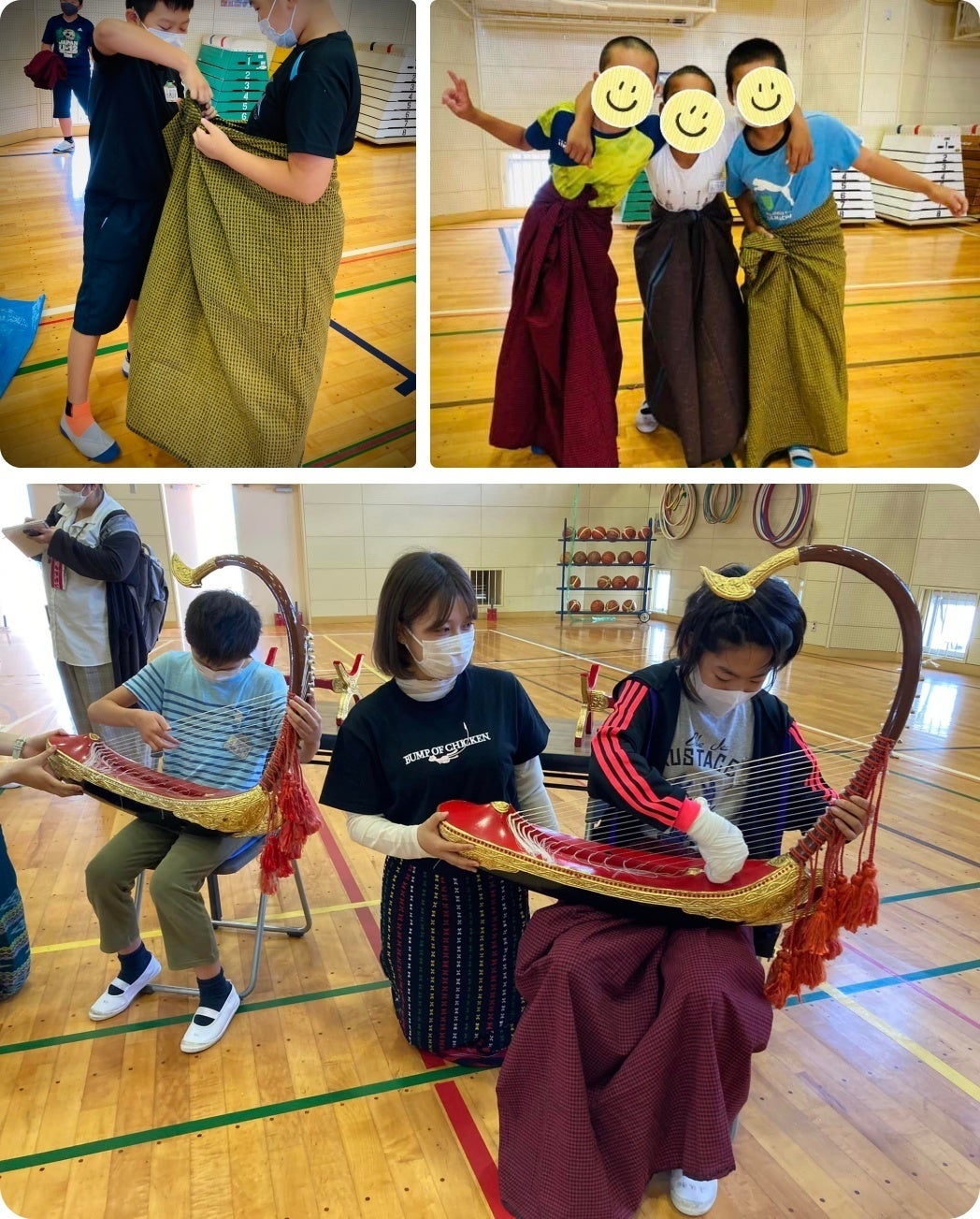 他にも、ロンジー体験やサウンガウ体験をしました。体験時間に、気になるかるたの札について、質問しに来た子もいました。