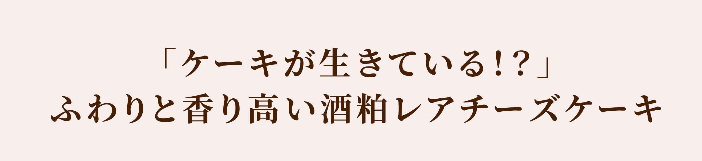 火を通すと酒粕の風味が飛んでしまうため、最終的に工程の最後に火入れしない酒粕を「追い酒粕」することでイキイキとした酒粕の香りと粒感までがしっかりとたつように。このアイデアがケーキに「生きている」と言わしめる生命力を吹き込んだと言っても過言ではありません。
