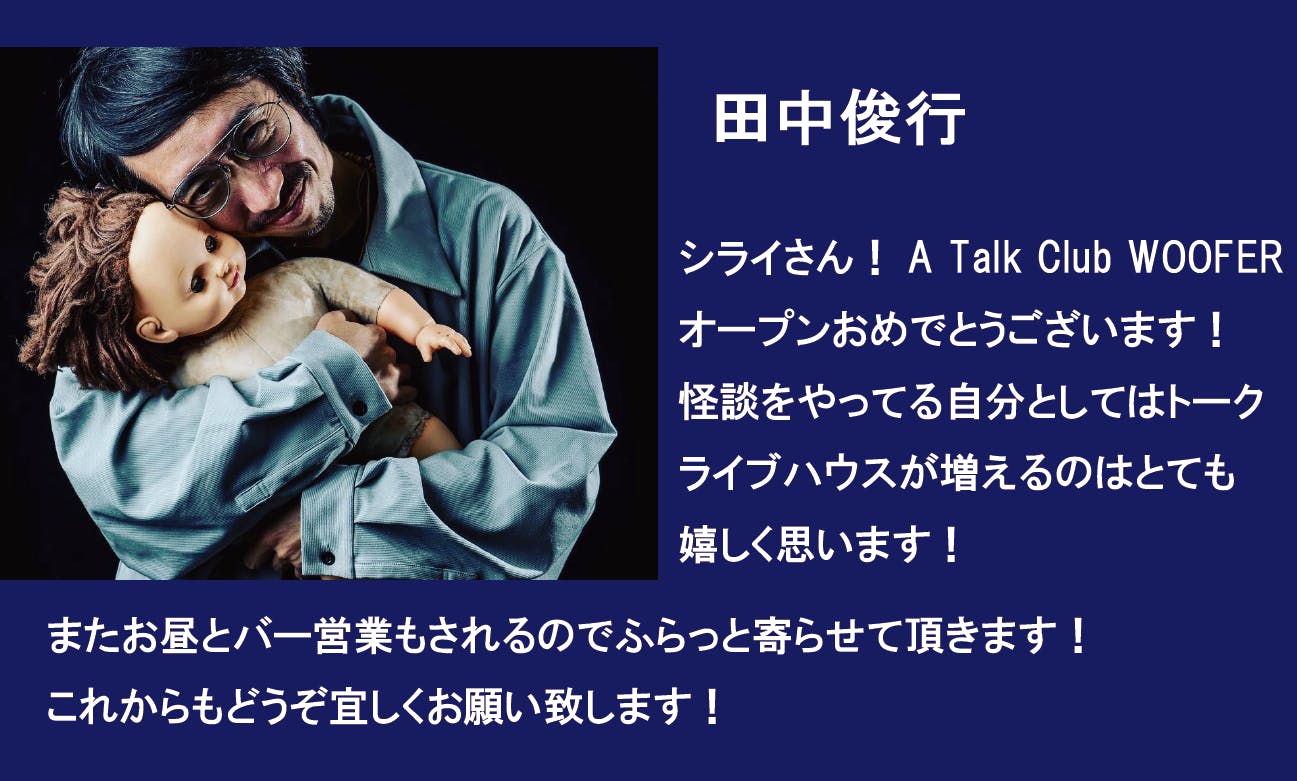 5/29(日)田中俊行さんからA Talk Club WOOFERオープンお祝いコメントいただきました!