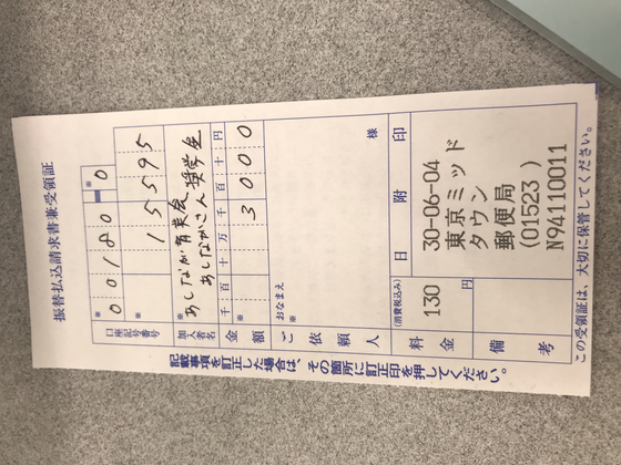お一人様は、あしなが育英会に寄付をご希望でしたので、郵便局より振込みました