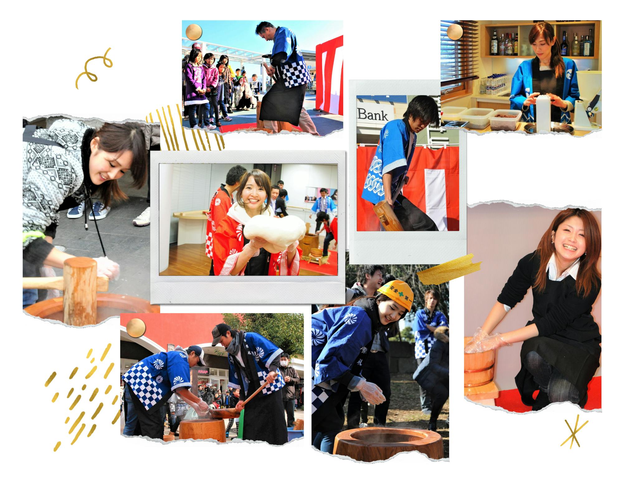 当社は、お餅つき大会をきっかけに出会うことができたお客様と、長く伸びるお餅のように、末永くお付き合いいただけるよう、スタッフ一同、日々努めています。