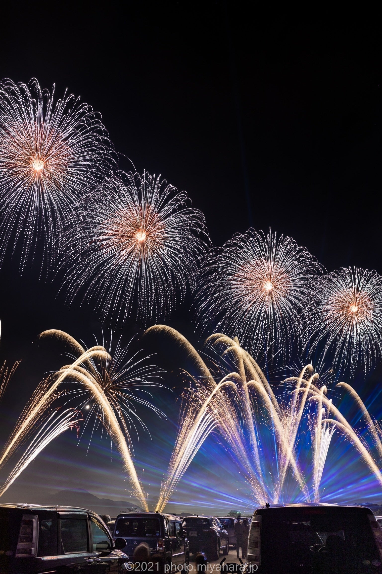 車で入退場し、車の中でも外でも観覧できるスタイルは、全国でも珍しく、安心して花火を楽しむことができます。