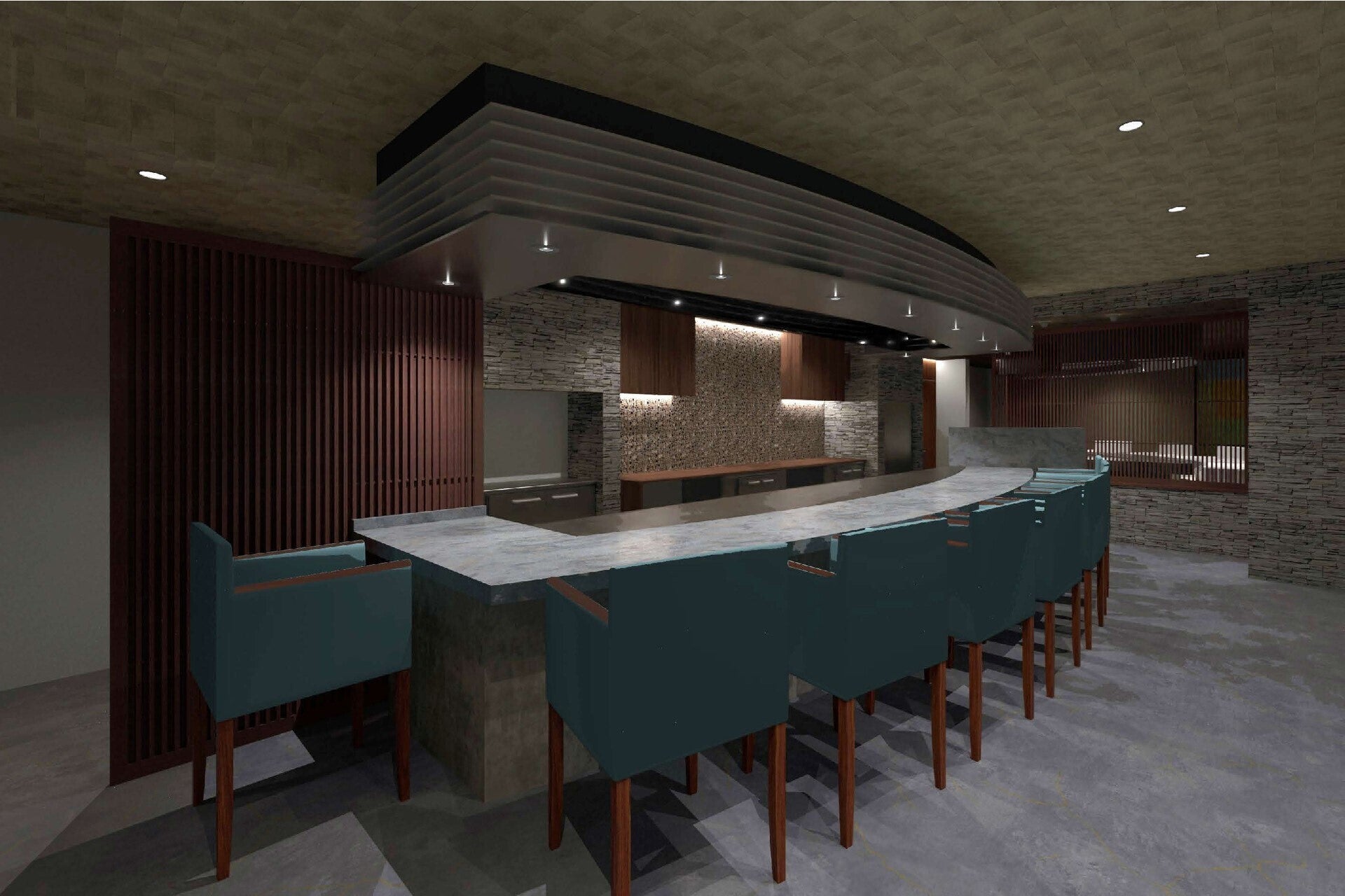 壁材は天然石を思わせる重厚感と繊細な色合いが豪華な雰囲気を演出する特別な材料を選定。深くシャープなエンボスによる多彩な表情で、上質で高級感のある室内を演出してくれます。(ウットリ