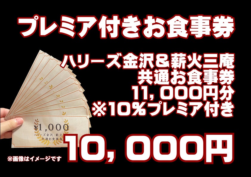 ・ハリーズ金沢&薪火三庵共通お食事券 11,000円分(有効期限 発行より半年間有効)