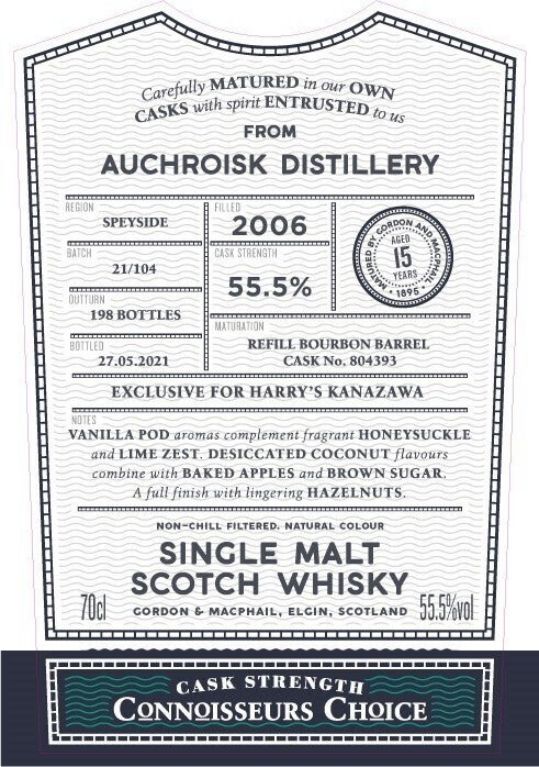 ・ハリーズ金沢向け オスロスク2006 15年 G&Mコニサーズチョイス 700ml 1本(若鶴酒造株式会社が受注・発送)