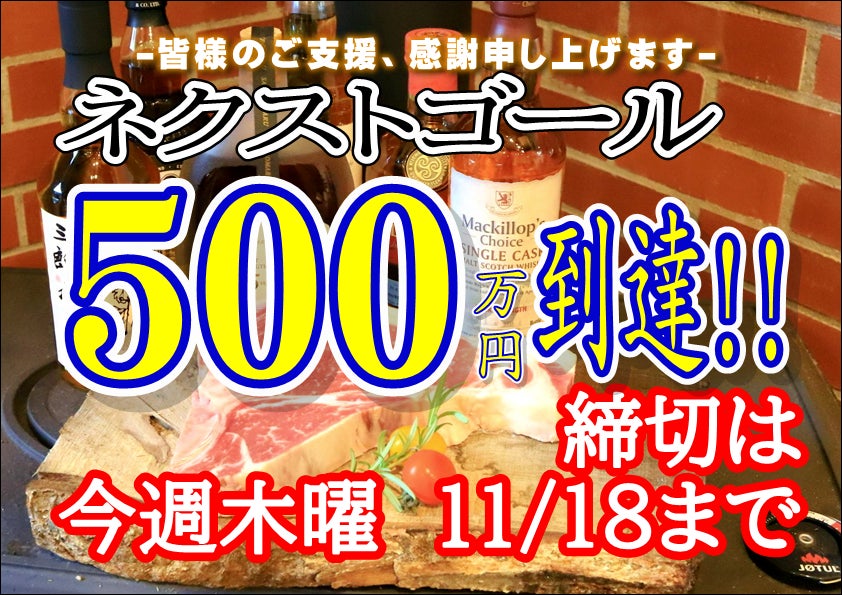 皆さまのご支援とお力添えのおかげでネクストゴールの500万円を達成する事ができました!!心より感謝申し上げます。