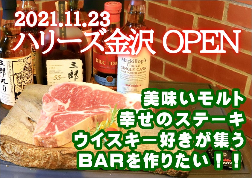 ウイスキーBAR HARRY’Sが金沢駅前に出店されるとのこと、誠におめでとうございます。