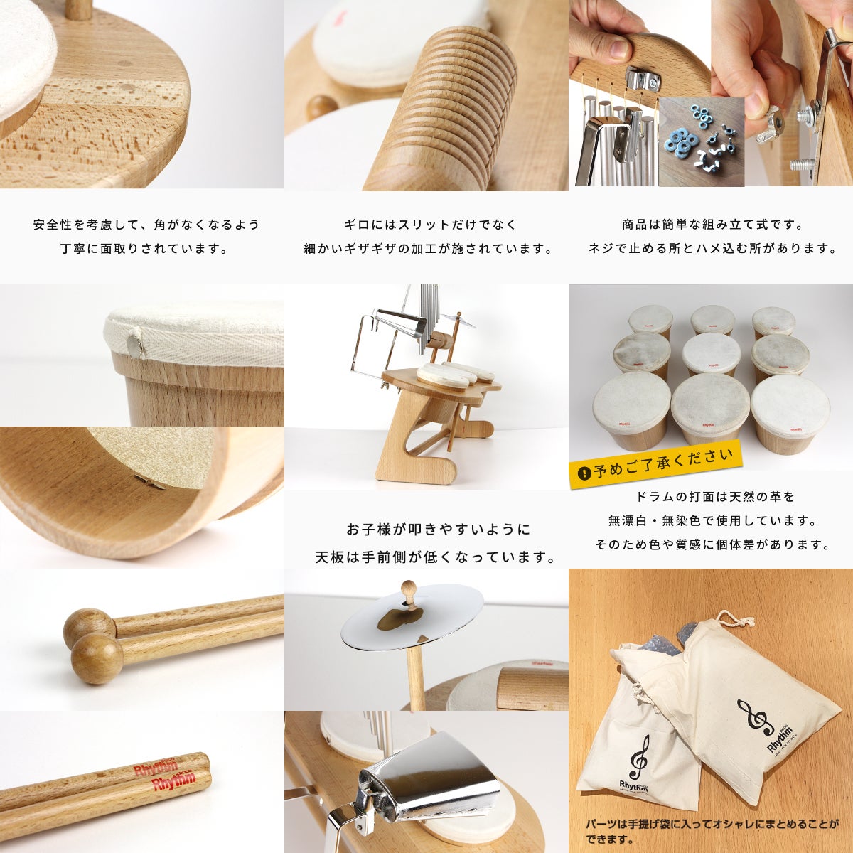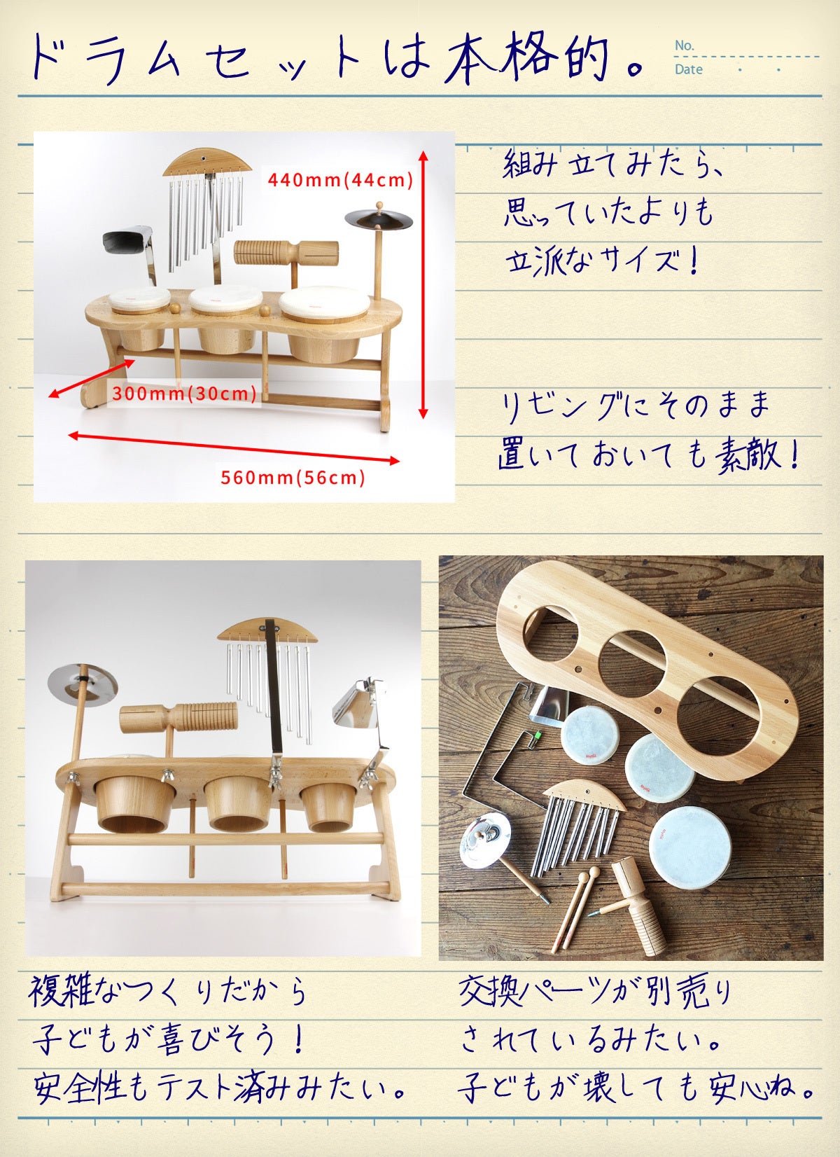 リズムポコ・オリジナルドラムセットと日本で調律されたザイロフォン(木琴)のセットを特別価格【12%オフ・配送料込】でお届けします。