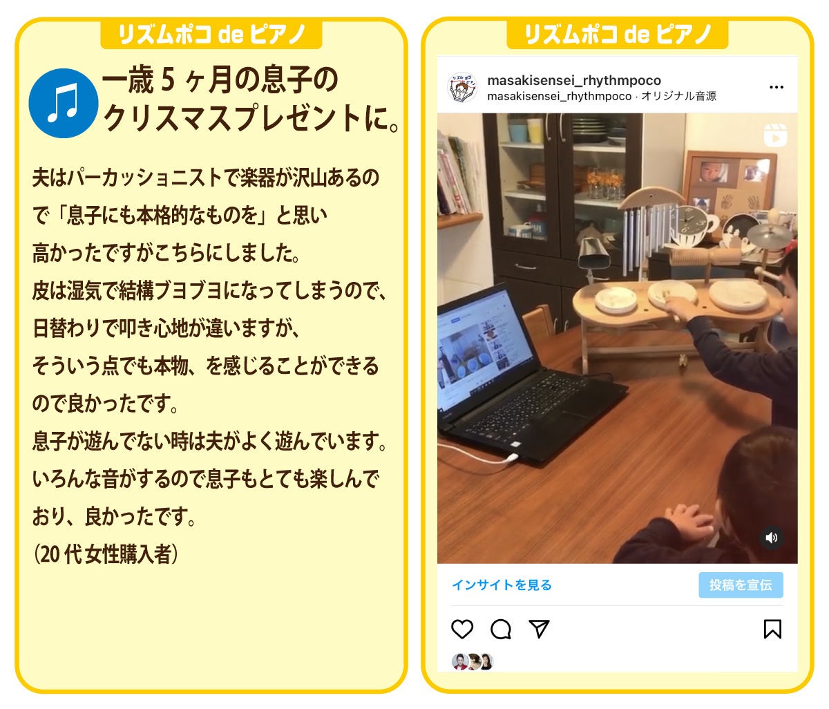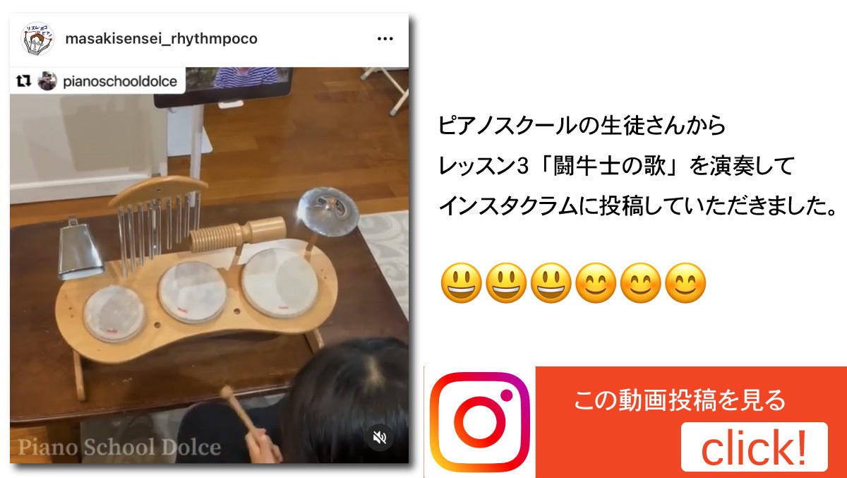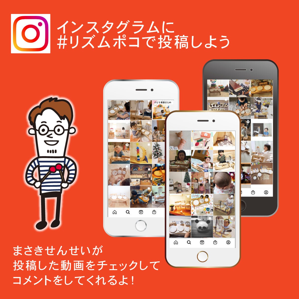 インスタグラムに「#リズムポコ」をつけてみんなの演奏を投稿してください!「まさきせんせい」がコメントするよ。