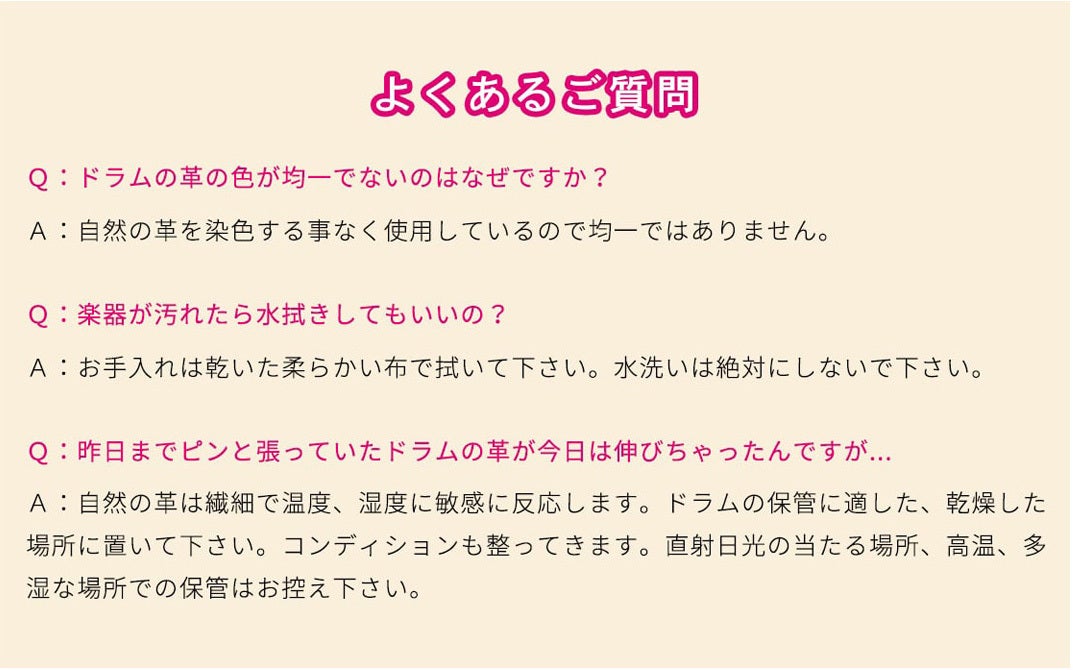 叩くと音が簡単に出るドラムですが、正しい叩き方をマスターして「リズム」感がよくなると歌や楽器の演奏はもちろん、スポーツ・ダンス・おしゃべりなど様々な場面で役に立ち、お子さまの可能性を広げる有意義な楽器です。