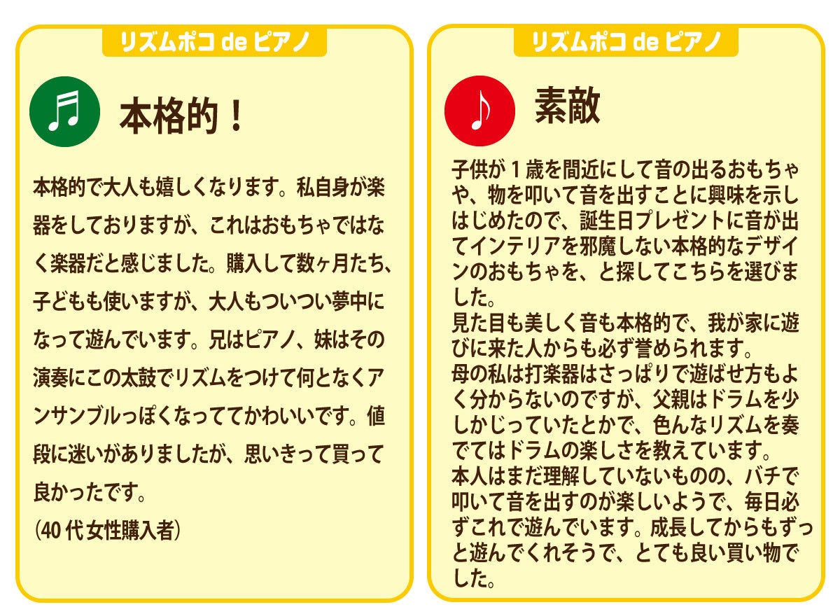 視覚と聴覚を研ぎ澄ませて、身体を使って何度も練習することにより、リズム感は確実に良くなっていくでしょう。リズムポコから鳴る音にも個性が出てきます。