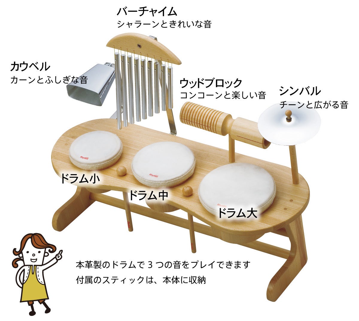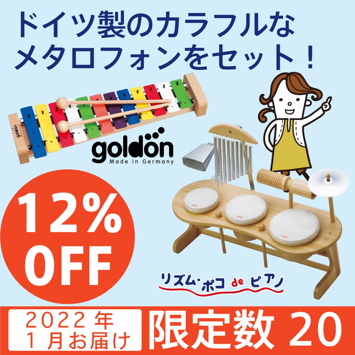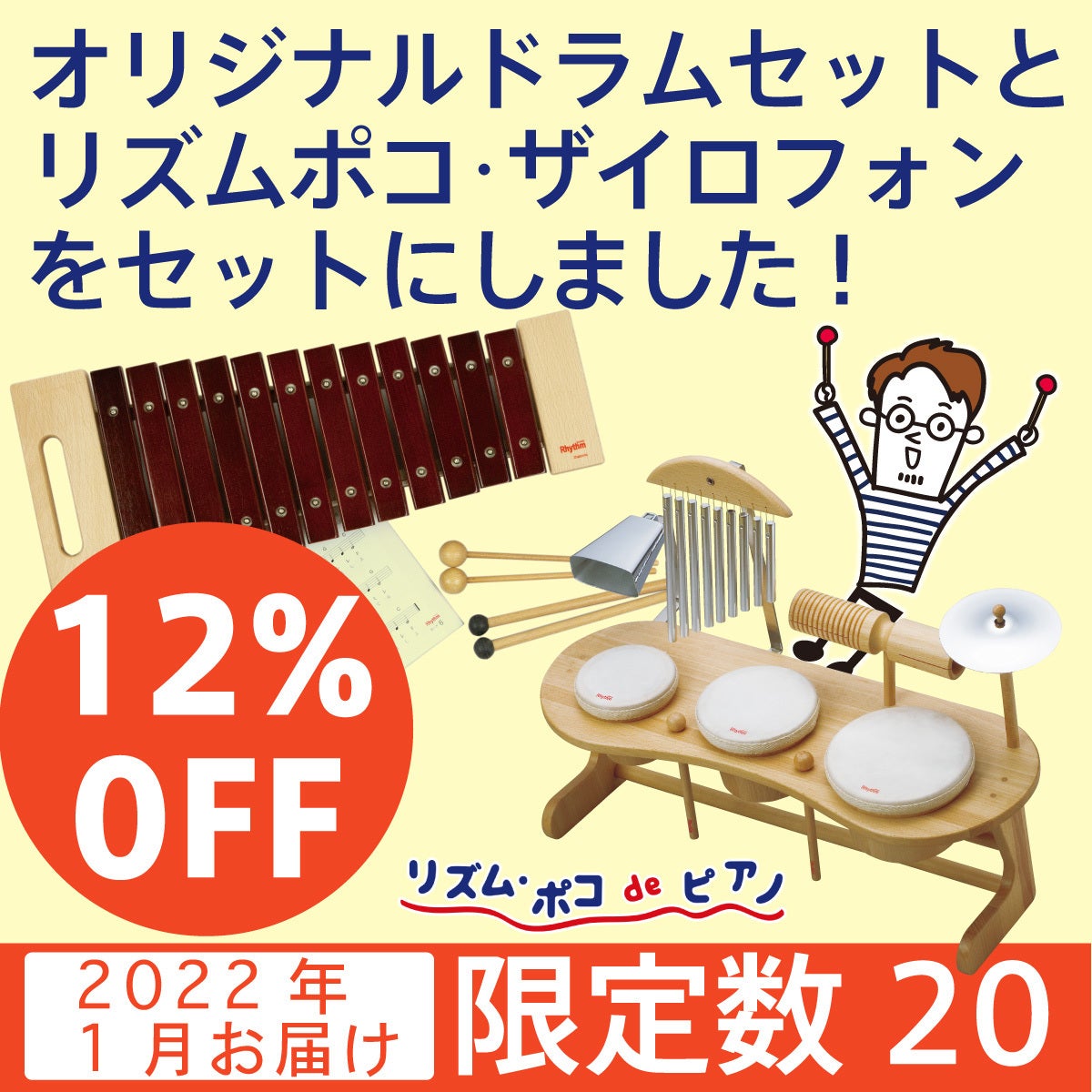 セット定価29,480円(オリジナルドラムセット:18,480円・税込、リズムポコザイロフォン12音:11,000円・税込)が12%オフになるとってもお得な企画です。