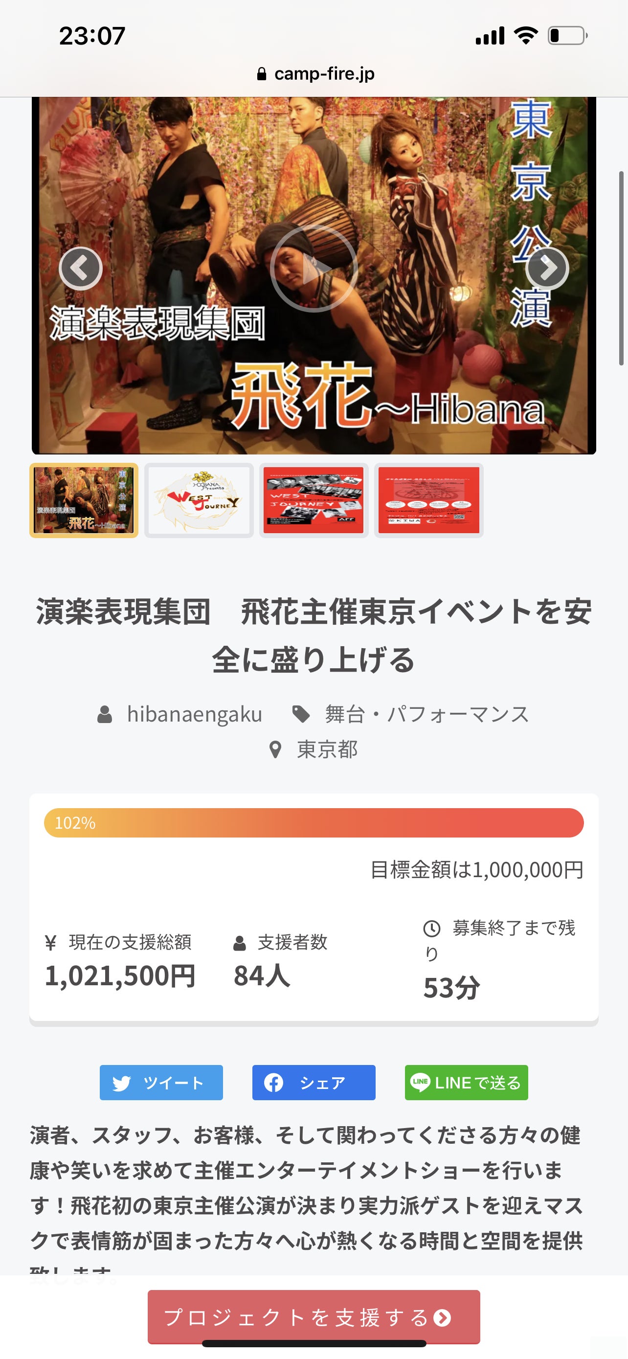 2021/11/30 23:19終了1時間を切ったところでお礼の記事を書かせてください!本日最終日になんと!!!102%達成いたしましたぁ〜!!!!こんな記事が書ける時が来るとは思っていませんでした!!本当にすごい!!!ご支援してくださった方々!!本当にありがとうございました〜!!!そしてずっと応援してくださった方々!メッセージを送ってくださった方々!!ありがとうございました〜!!!もうイベントが終わったかな!?と思うくらいの達成感が湧きしかもインスタグラムの飛花アカウントにて生配信中に達成するという何という美味しい瞬間!!(笑)アーカイブ残っておりますので見てみてください!人は興奮すると何言ってるのかわからなくなったり周りで人が喋ってようが喋っちゃう現象が見られます(笑)その光景を見て涙してくださった方々も本当にありがとうございます!そのコメントをいただいてこちらが涙しそうでした!これは12月4日5日の2日間のイベントのために行ったもの!少しでも多くの方とこのイベントを安全且つ大胆に作っていきたい!そして一人でも多く1秒でも長くこの夢のようなエンタメの世界にいてもらいたいと思ったからです!本番はここからです!当日いらっしゃる方々!配信を見てくださる方!!楽しみにしていてください!これが皆さんで作り上げたいショーです!皆さんの口からそう言ってもらえるように全力で努めて参りますので最後まで応援よろしくお願い致します!とりあえず!!目標達成ありがとうございます!!!! もっと見る