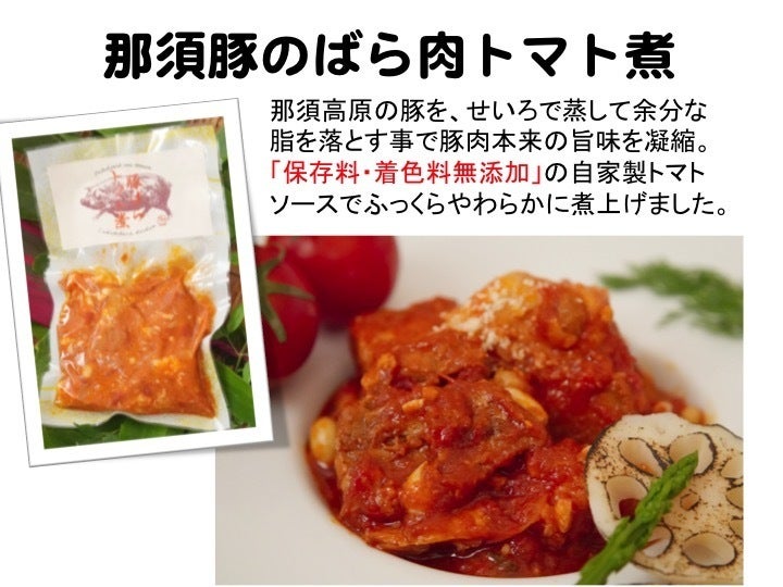 原材料名 豚ばら肉、トマトピューレ、トマトジュース、大豆、塩、胡椒、酒、