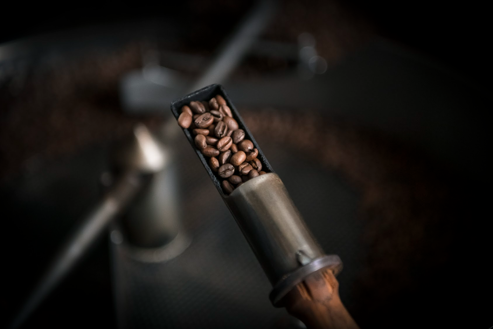 焙煎の工程において、時間や温度、香り、そして最後の決め手は豆の表面のツラを確認し、長年の体で覚えてきた経験と感覚による直感で仕上げます。