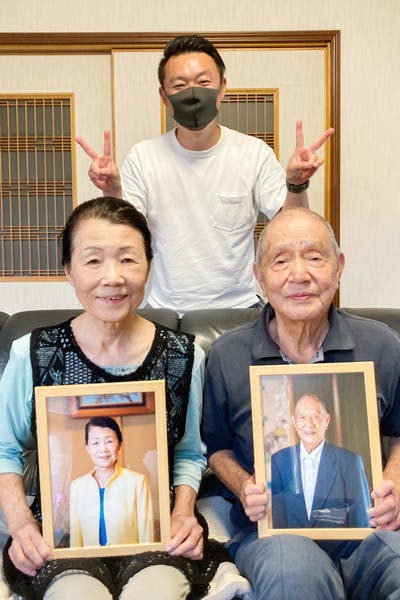 この様な経緯があり「その人らしさが少なく、また合成で作り上げた遺影写真の文化を変えたい」という強い想いを自分の祖母に話し『輝き写真』1枚目の写真が出来上がりました。