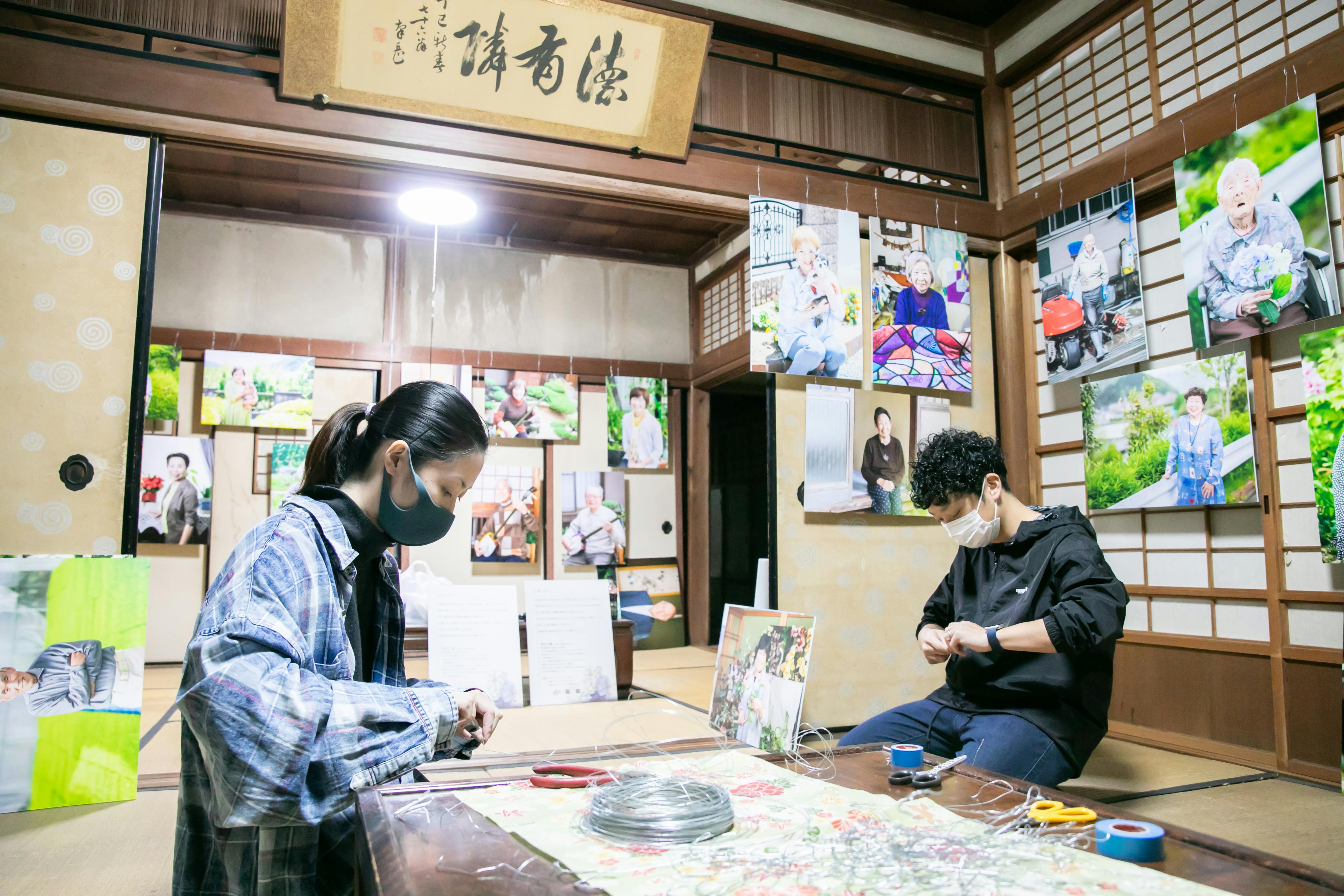 友人たちにも手伝ってもらい、1枚1枚展示準備を行っています。