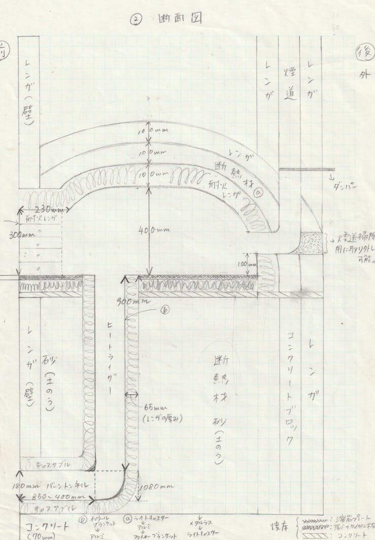 写真は1代目の薪窯の手書きの図面。