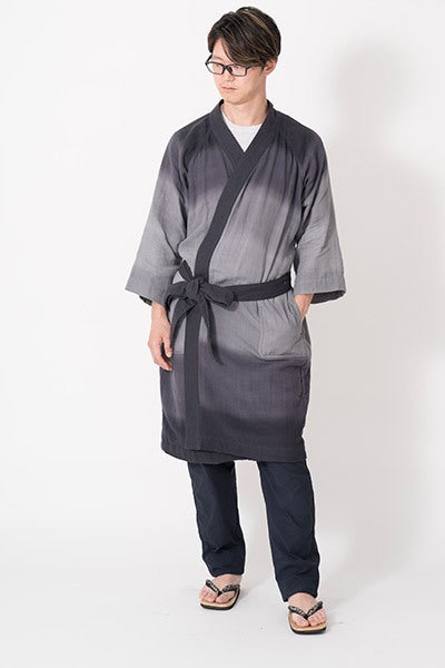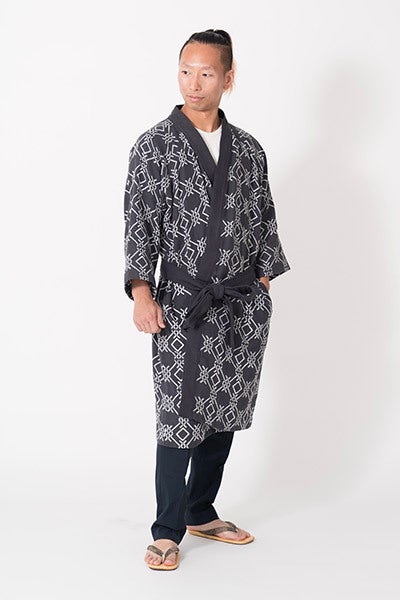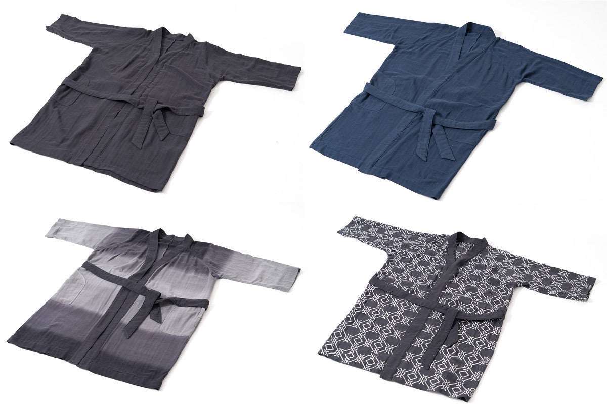 創業1889年、明治時代から代々引き継がれている東京和晒の上質な生地をグレードアップさせ、伝統技法「注染」で染め上げた生地をガウンに仕立て上げました。