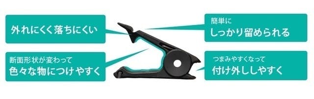 ②特殊クリップで片手でワンタッチ!どこでも簡単付け外し