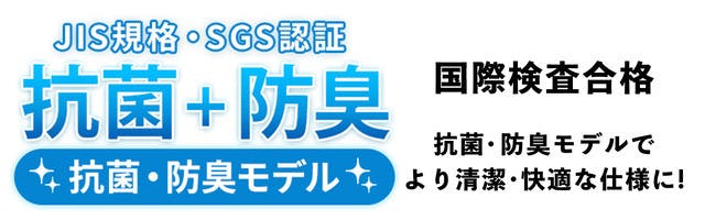 JIS規格・SGS認証『抗菌・防臭』で、清潔で快適に外出していただけます。