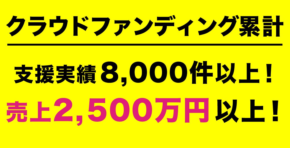 #2GOシリーズは、国内クラウドファンディング(※)でご支援いただき、自社調べで累計支援実績が8,000件以上、売上2,500万円以上を達成しました。