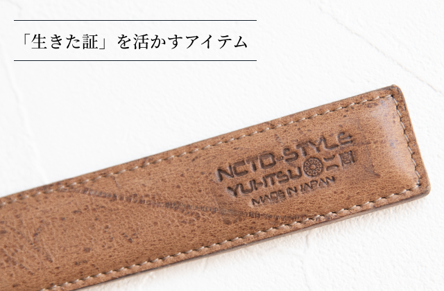 カラーは「ガウチョ」という最もナチュラルで薄いものをご用意いたしました。アイテムに「生きた証(傷)」を活かすためです。同じつくり方をしても、レザーそれぞれの模様は千差万別。どのアイテムも「1点モノ」となります。クドゥレザーのアイテムを持っていると、「何ですか、この傷は」「すごいですね!」と尋ねられることがあるかもしれません。ぜひ、世界で唯一の模様を持つアイテム、とっておきの逸品であることを説明してください。