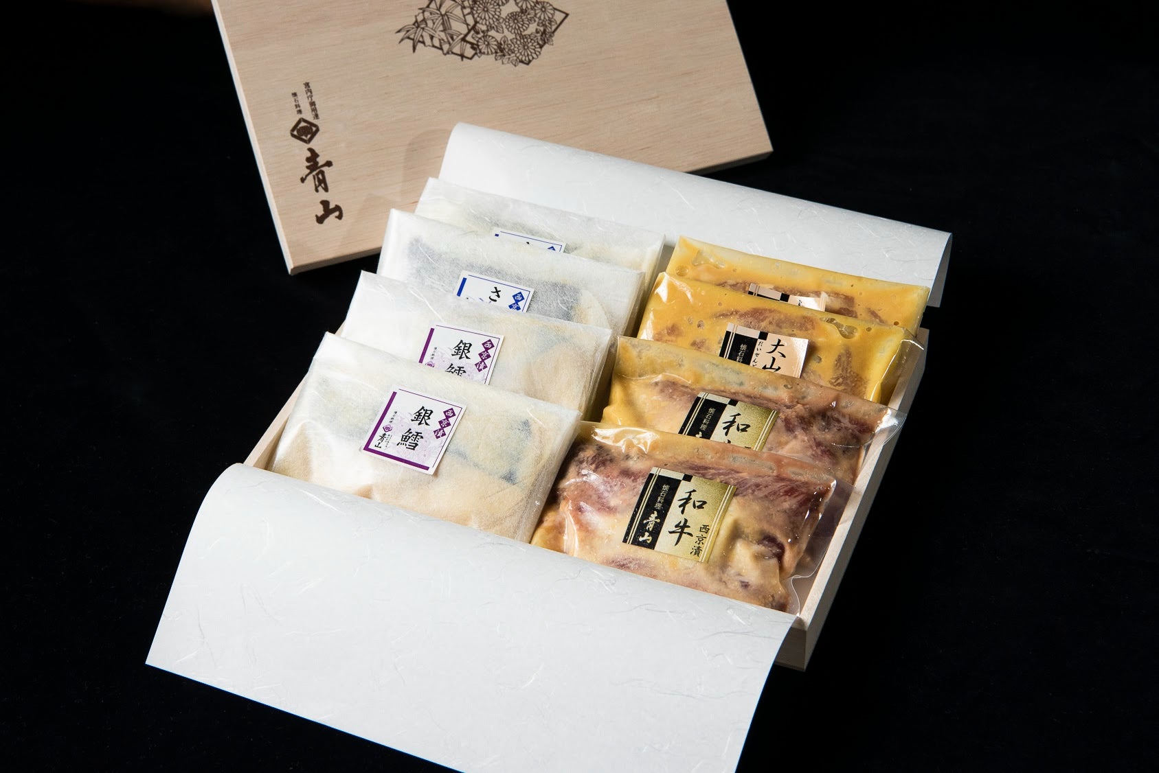 今回は、銀だら、ホワイトワレフー、さわらのほか、大山どりや和牛の西京漬もご用意いたします。