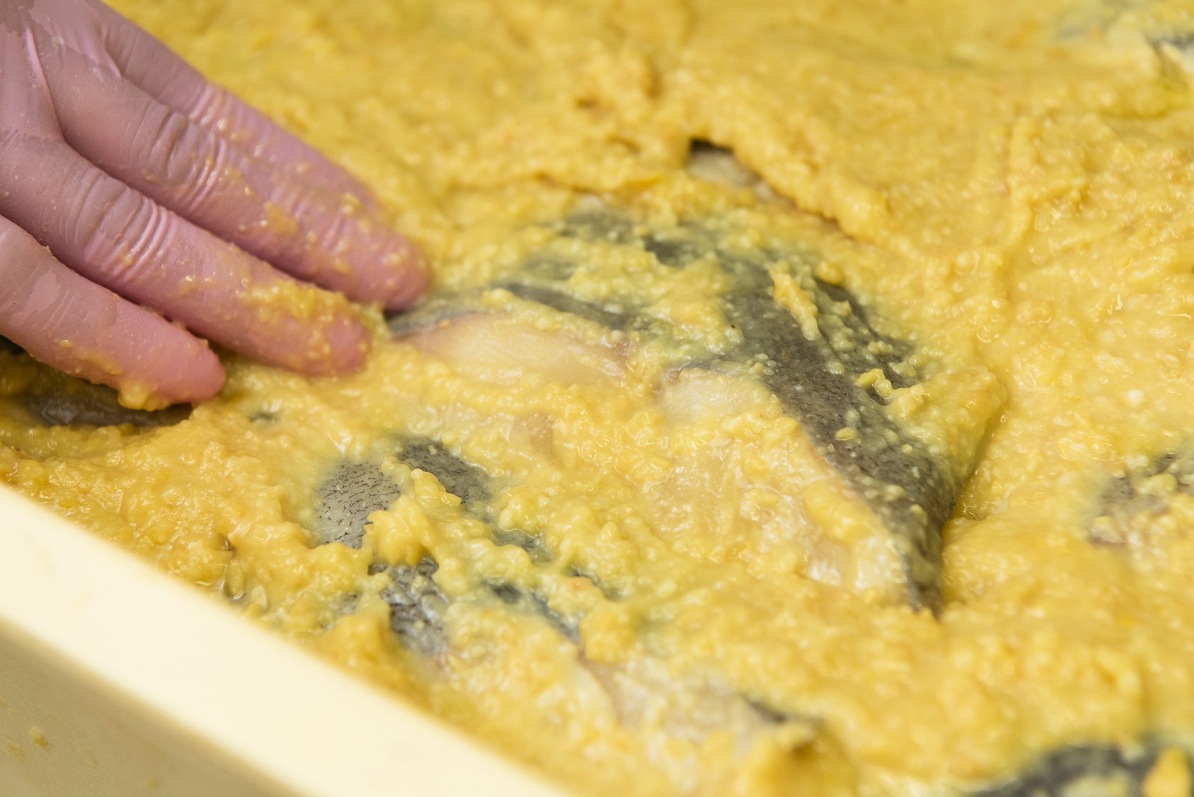 特に、銀だらのように脂がのった魚は味噌が染み込むのに時間がかかるため、5日以上、じっくりと時間をかけて寝かせます。