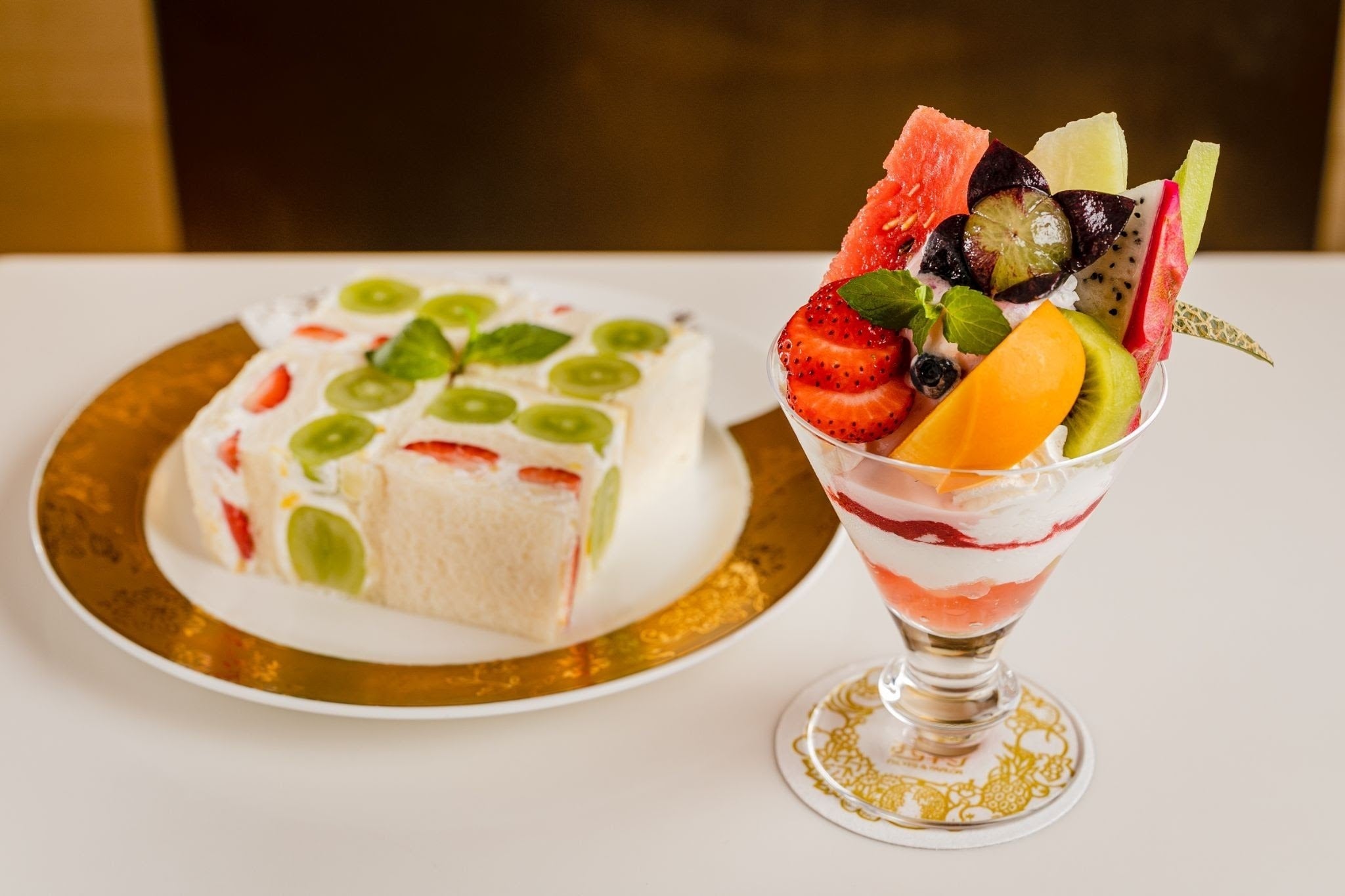 ・【フルーツパーラー 】特選 季節のフルーツサンドとフルーツパフェセット(季節のフルーツジュース付き) 4,500円