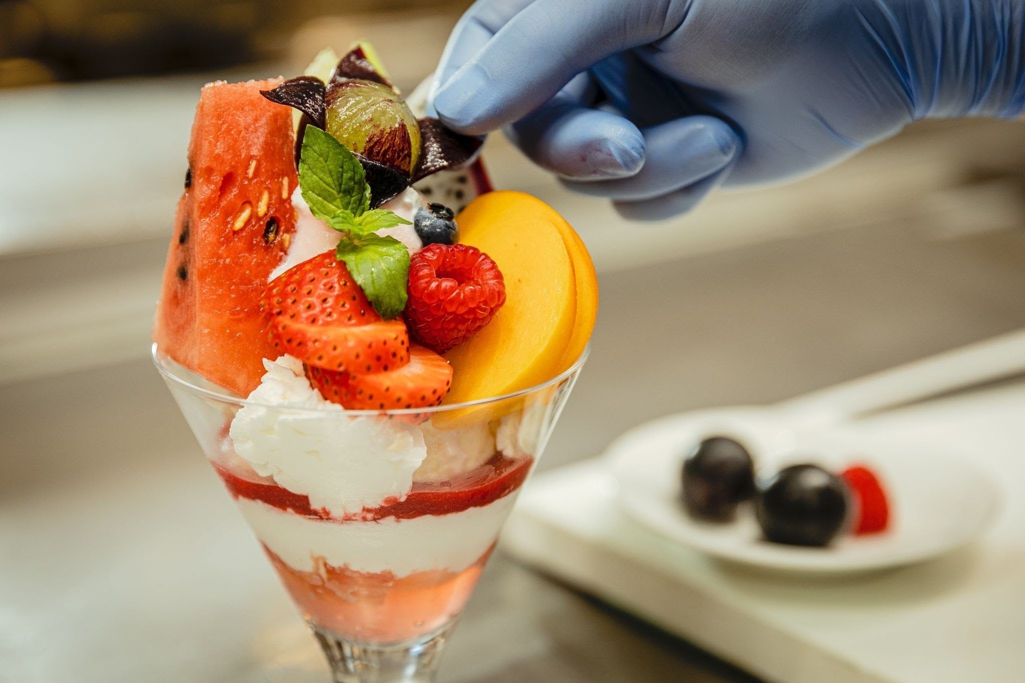 フルーツの盛り付け方だけでなく、パフェグラスやスプーンなどの体裁にもこだわり、常に、お客様に喜ばれるものを追求し続けています。