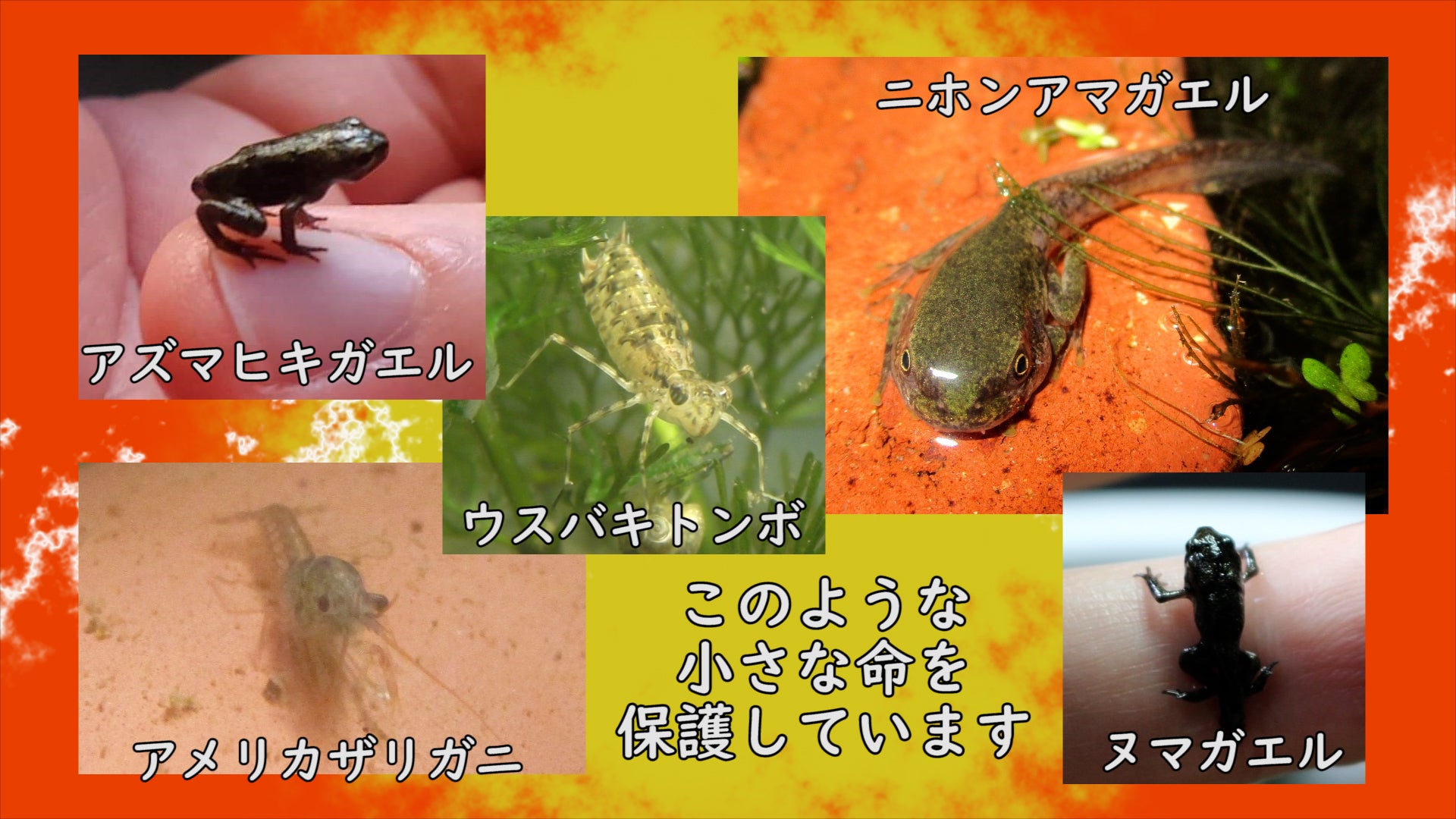 足掛け12年の間、アメリカザリガニ、カエルやトンボ、チョウ、水棲昆虫の幼虫、魚類、カマキリ等の卵のう等、さまざまな生き物を保護して来ました。