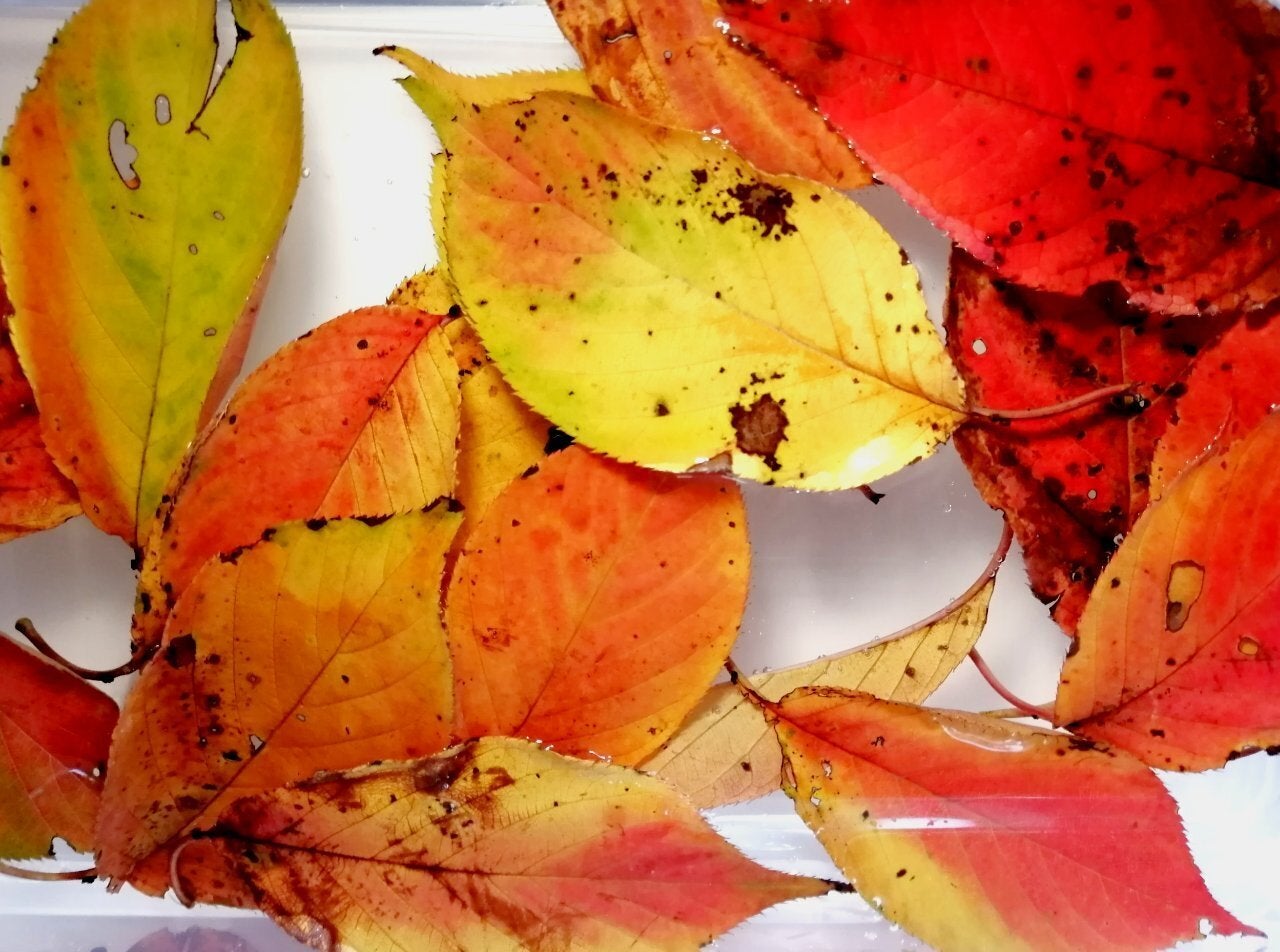 帰りに木々の豊かな公園に寄って、綺麗な落ち葉を20枚ほど収集して来ました。