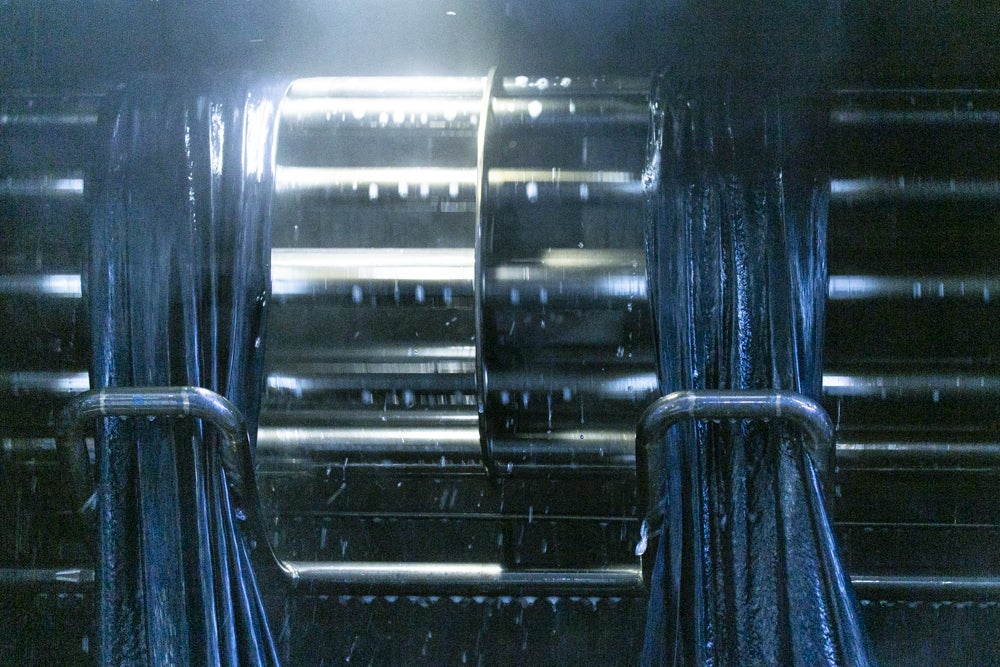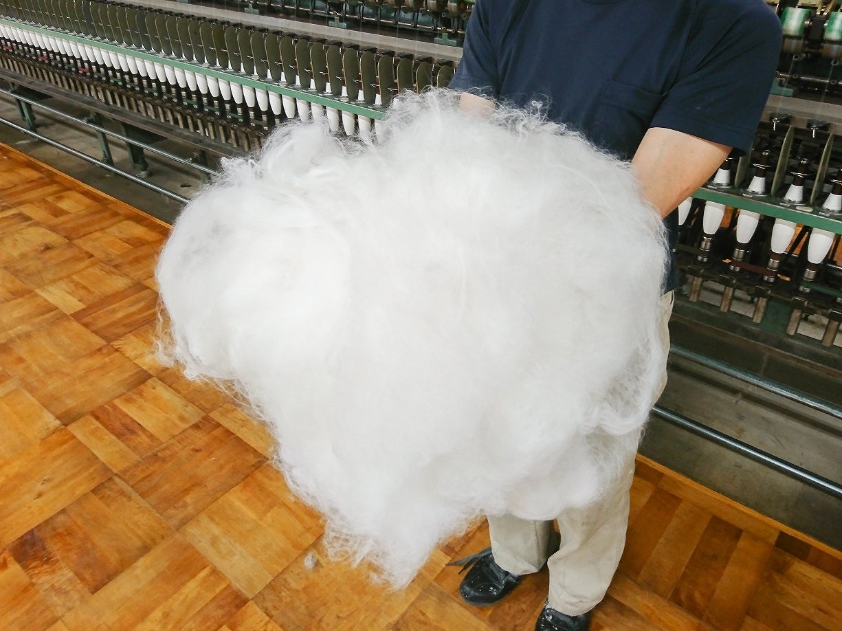 ウールは水と深いかかわりを持つ繊維です。繊維の中に常に15%ほどの水分を保有しています。人の髪と同じで、使う水によって艶や潤いがまったく異なってきます。私たちの工場は「水の都」大垣市にあります。大垣市は地下湧水に恵まれ、おいしい水処として有名です。そのおいしい地下天然水を使って、ウールの紡績・織・染色加工をしています。