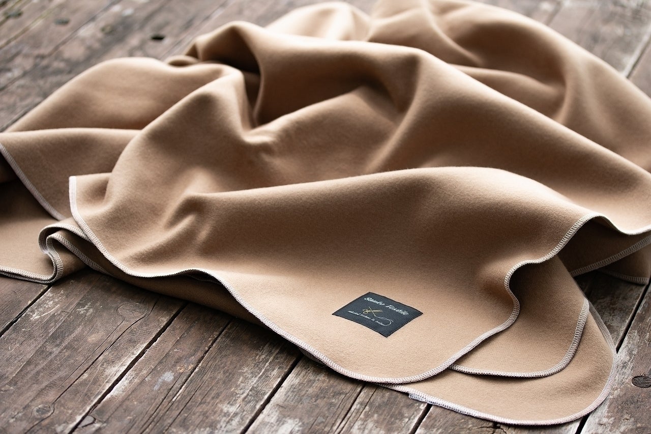 ションヘル式織機によってゆっくりと手間ひまをかけて織り上げられる生地は、糸に強いテンションをかける必要がないので、ウール本来の繊細さ、ふくらみを損なうことがありません。今回私たちが提案するウールブランケットの生地も、このションヘル織機で丁寧に織り上げたものです。私たちの会社はこの貴重な旧織機を8台保有しています。メンテナンスに細心の注意を払い、後継者を育成して次の世代へ繋いでいきたいと思っています。