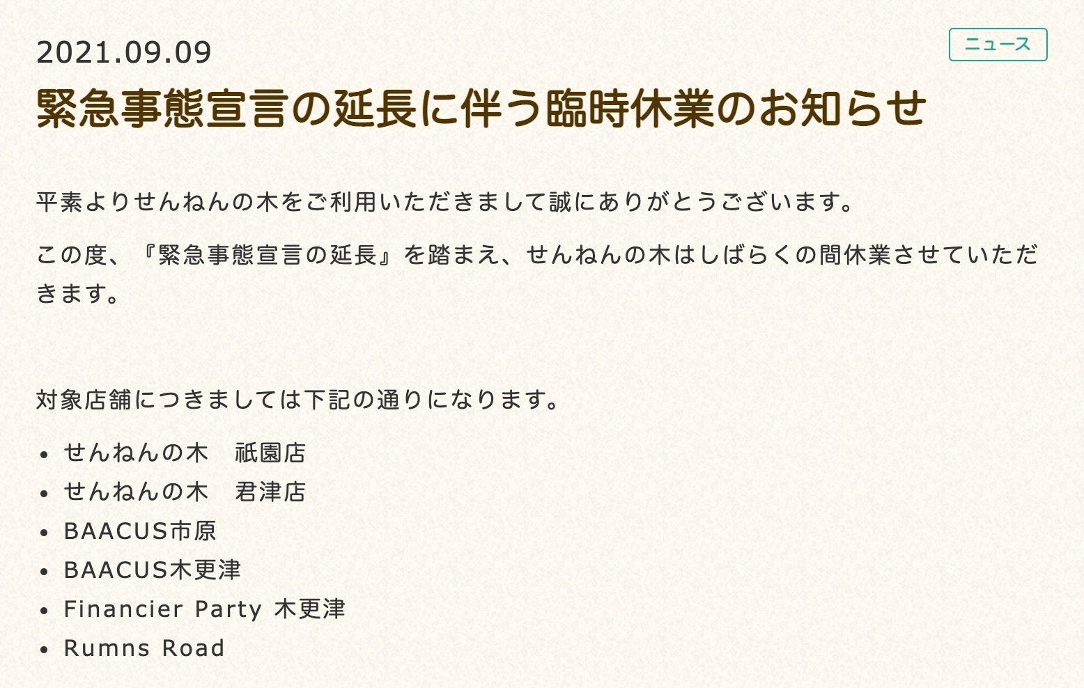 せんねんの木グループにはスイーツの製造・販売事業と店内での飲食できるカフェ事業もありますが、新型コロナウィルスによる緊急事態宣言を受け、感染予防対策の徹底や営業時間短縮、2021年8月からは店舗の臨時休業を続けております(プロジェクト開始時点で9/30の緊急事態宣言延長に合わせて休業中)