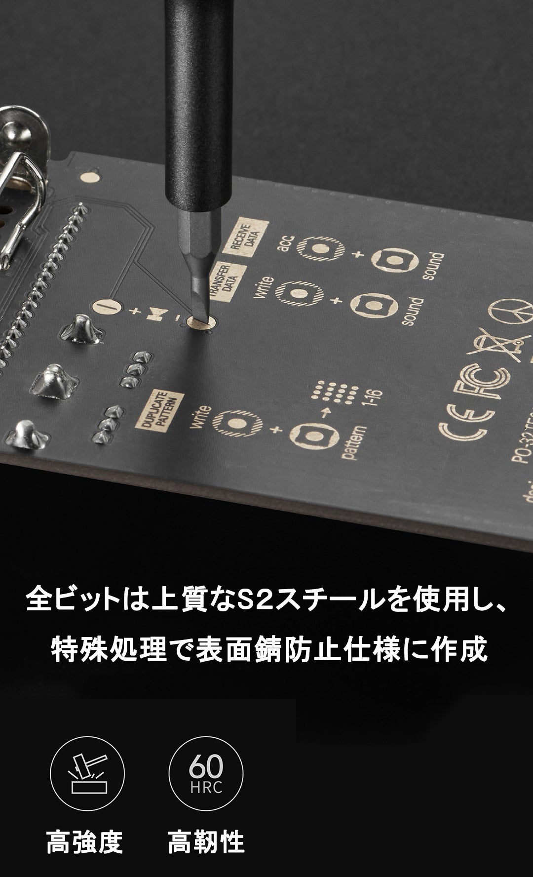 非常に豊富なタイプが揃っており、家庭内の精密機械ならほぼ対応可能な28種類のビット、高品質でネジの溝を痛めたりすることもありません。先端も丈夫にできており、長時間利用しても欠けたり曲がったりして傷めてしまうことがありません。
