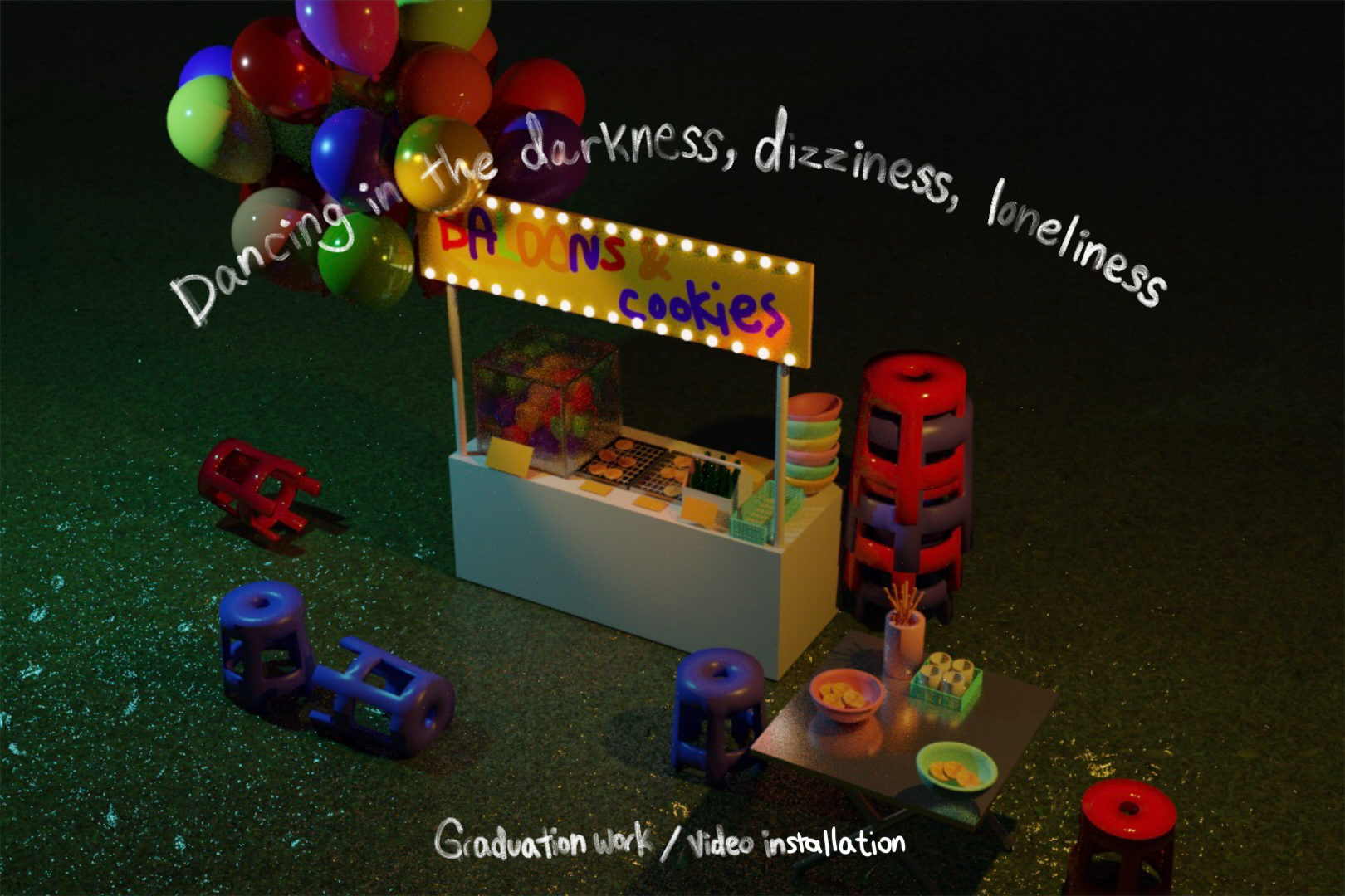 ビデオインスタレーション:「Dancing in the darkness, dizziness, loneliness」