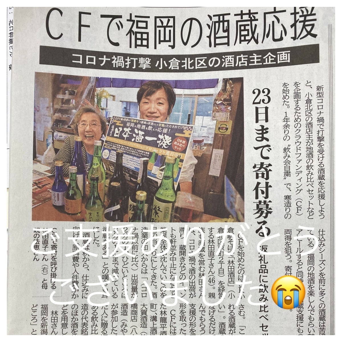福岡県の酒蔵を応援するプロジェクト「福岡県の日本酒一揆」が11月23日に無事に終了いたしました。沢山のご支援を頂き誠にありがとうございました。期間中には新聞やテレビでも取り上げていただき関心の強さも伺えました。そして、酒蔵さん達が大変な中、皆さんのご支援をお伝えしたことで、今真只中の酒造りの励み、力になったことは言うまでもありません。本当にありがとうございました。